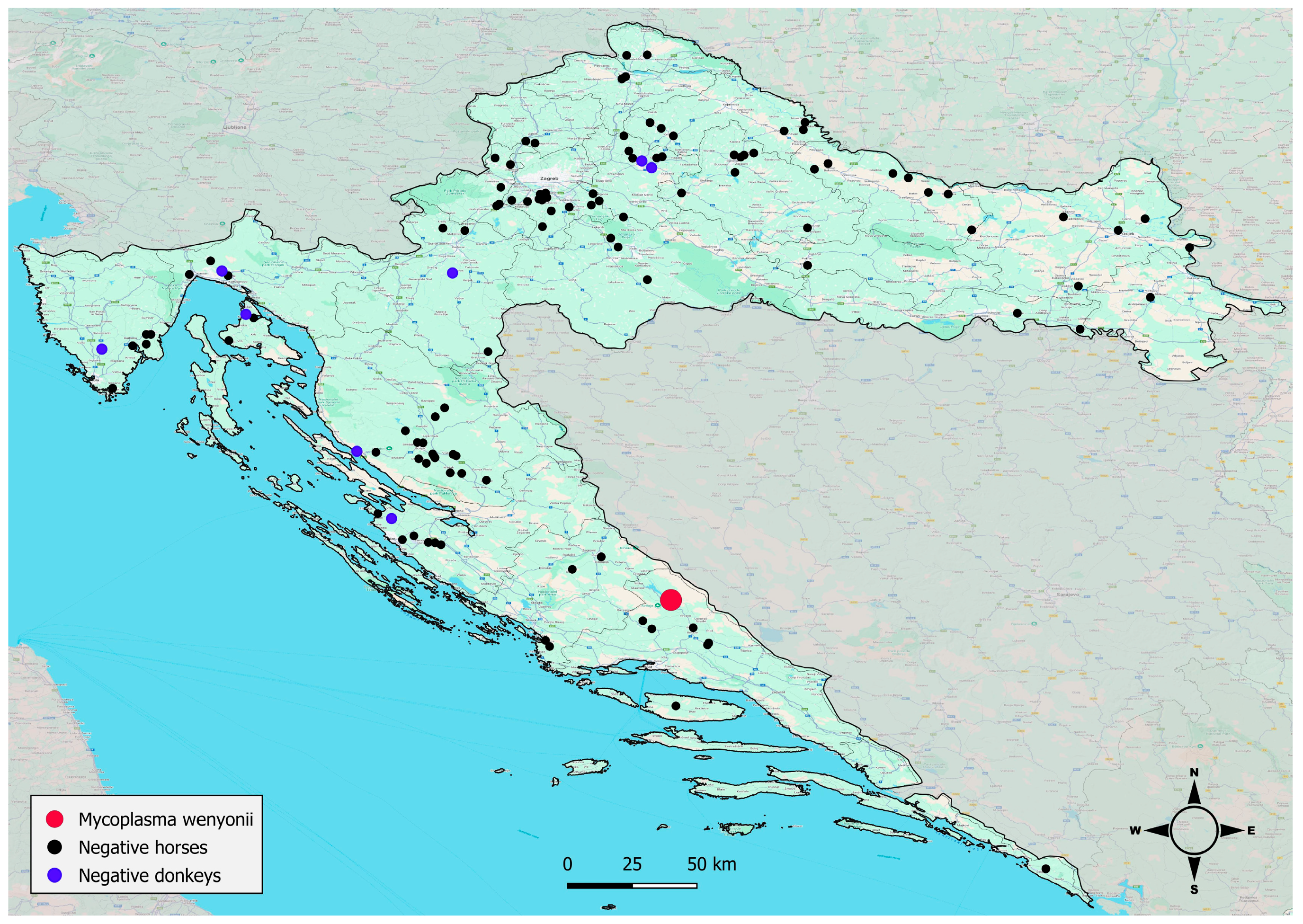 Konstantinović, N.; Gotić, J.; Baban, M.; Csik, G.; Listeš, E.; Gagović, E.; Jurković Žilić, D.; Arežina, I.; Šubara, G.; Čulina, F.E.; et al. Absence of Host-Specific Hemotropic Mycoplasmas in Horses and Donkeys from Croatia: First Systematic Survey in Southeastern Europe. Animals 2026, 16, 263. https://doi.org/10.3390/ani16020263