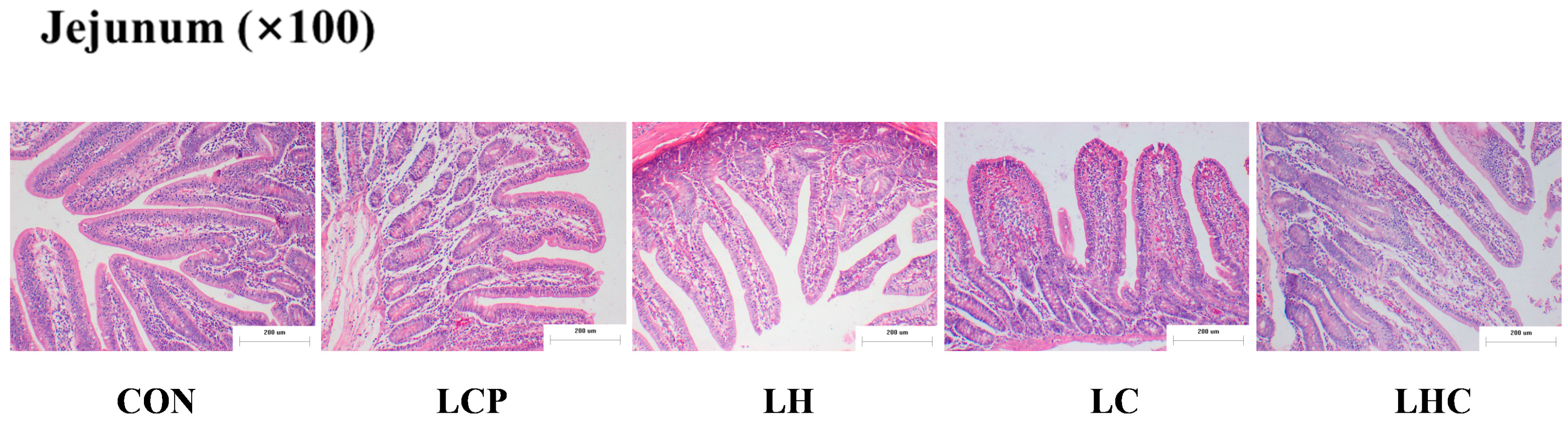 | Villus height, μm | 532 a | 362 c | 465 b | 494 ab | 510 ab | 10.4 | 0.001 |