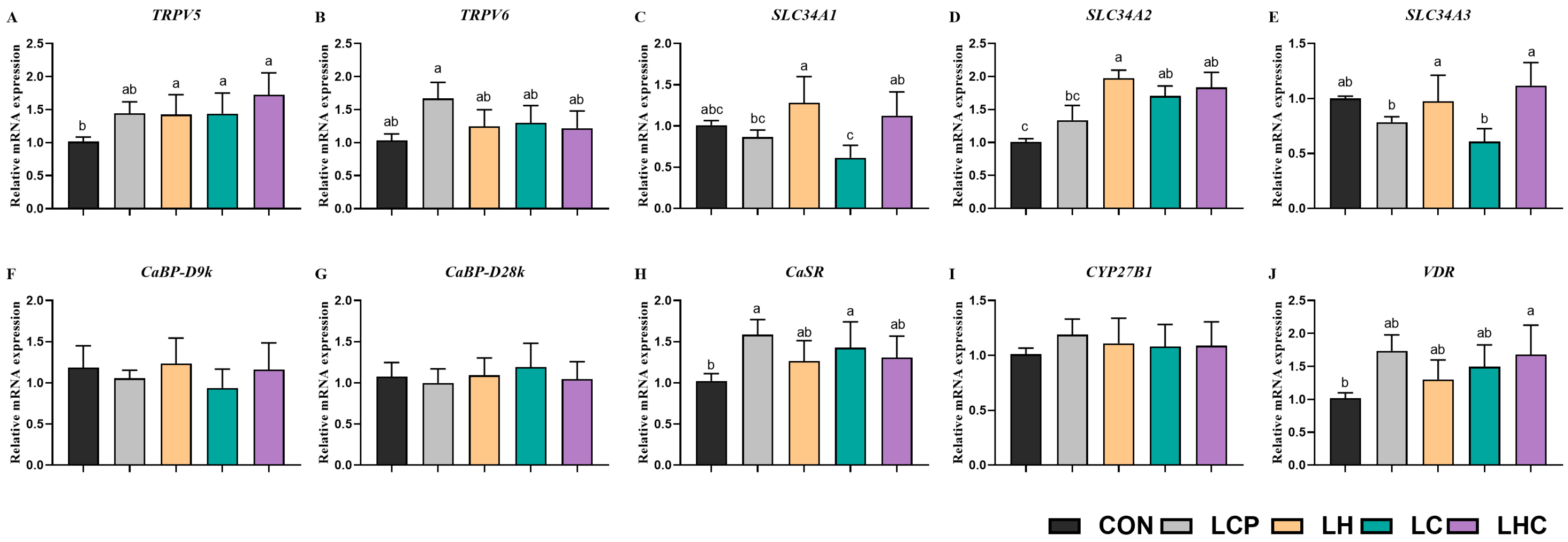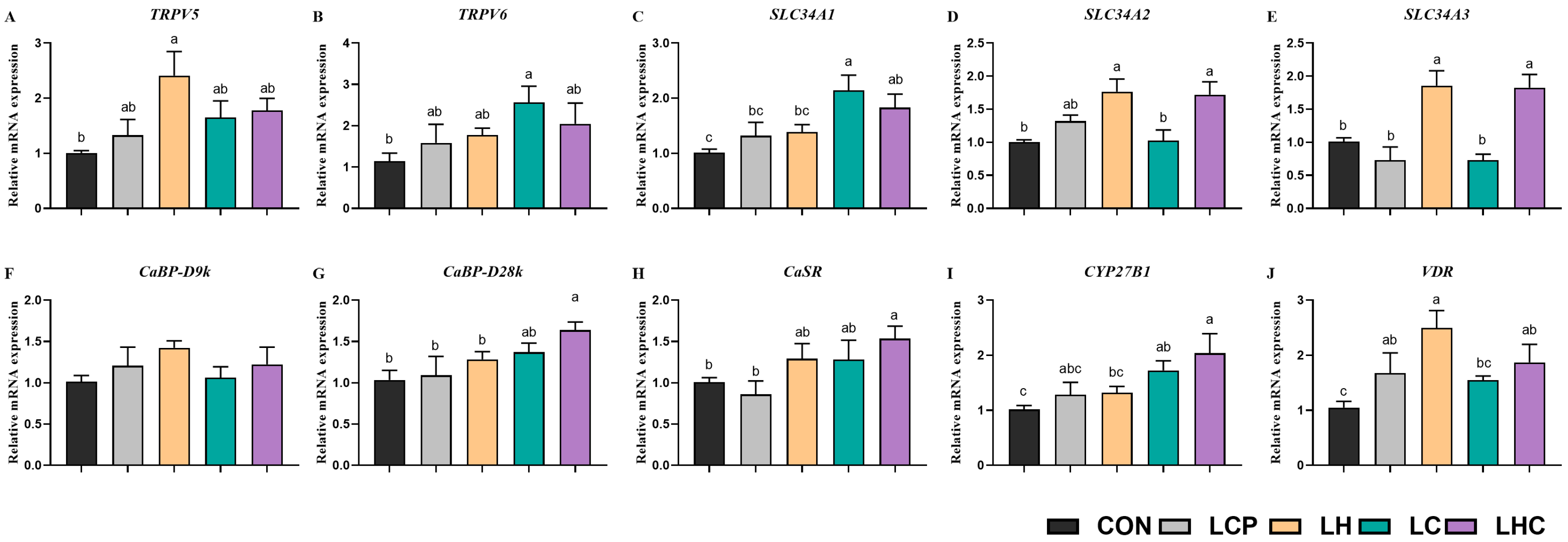 3.6. mRNA Expression of Calcium and Phosphorus Metabolism Genes in the Kidney and Jejunal Mucosa
