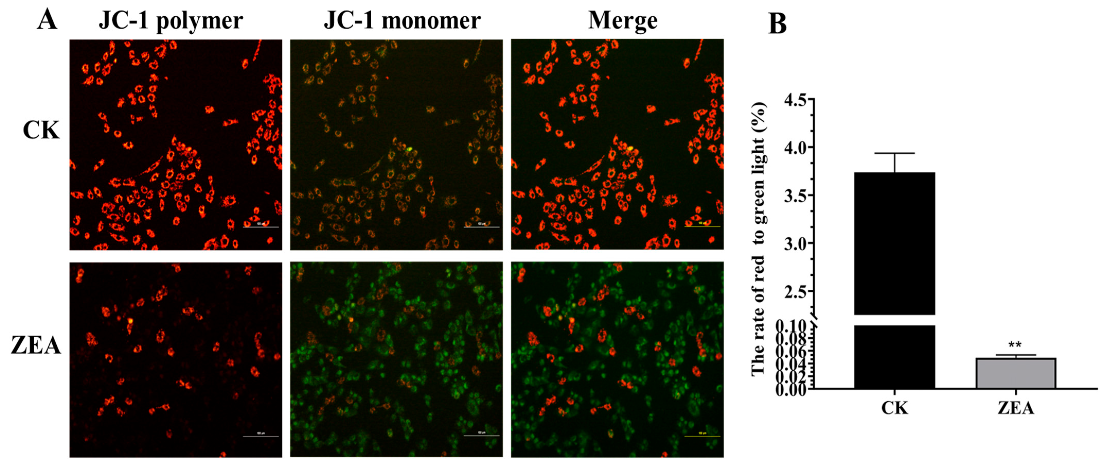 3.6. Effects of ZEA on Mitochondrial Membrane Potential in LCs
