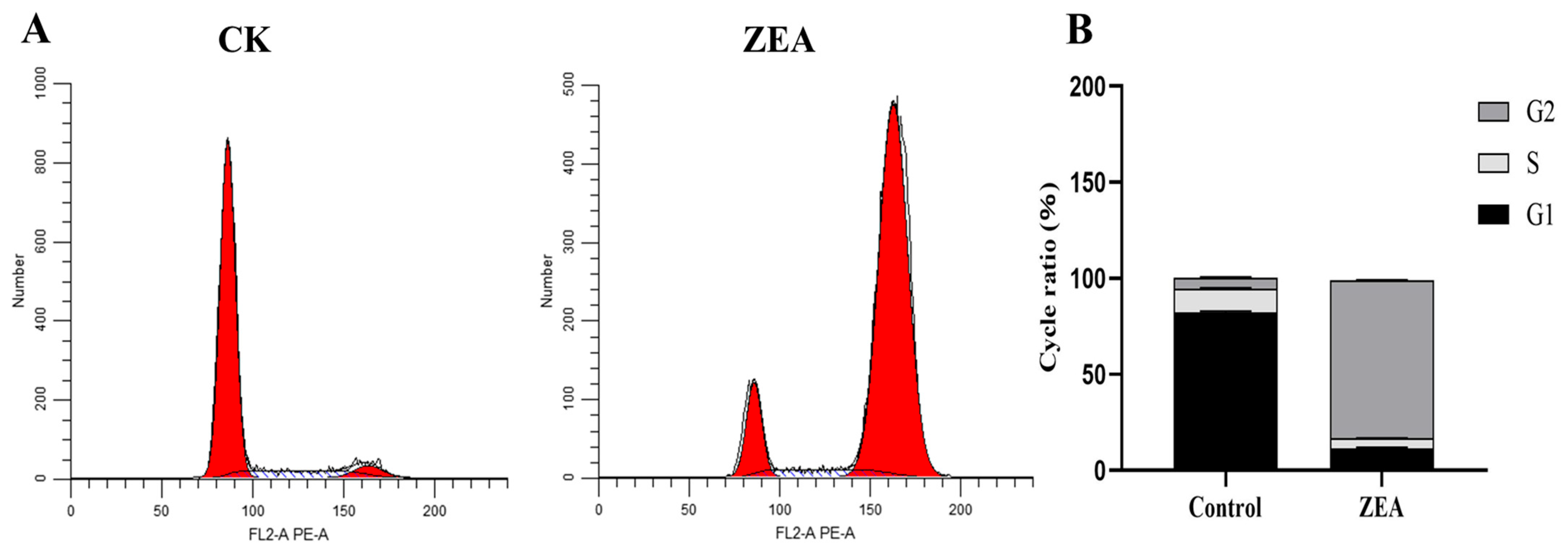 3.7. ZEA Affects the Cell Cycle of Goat LCs