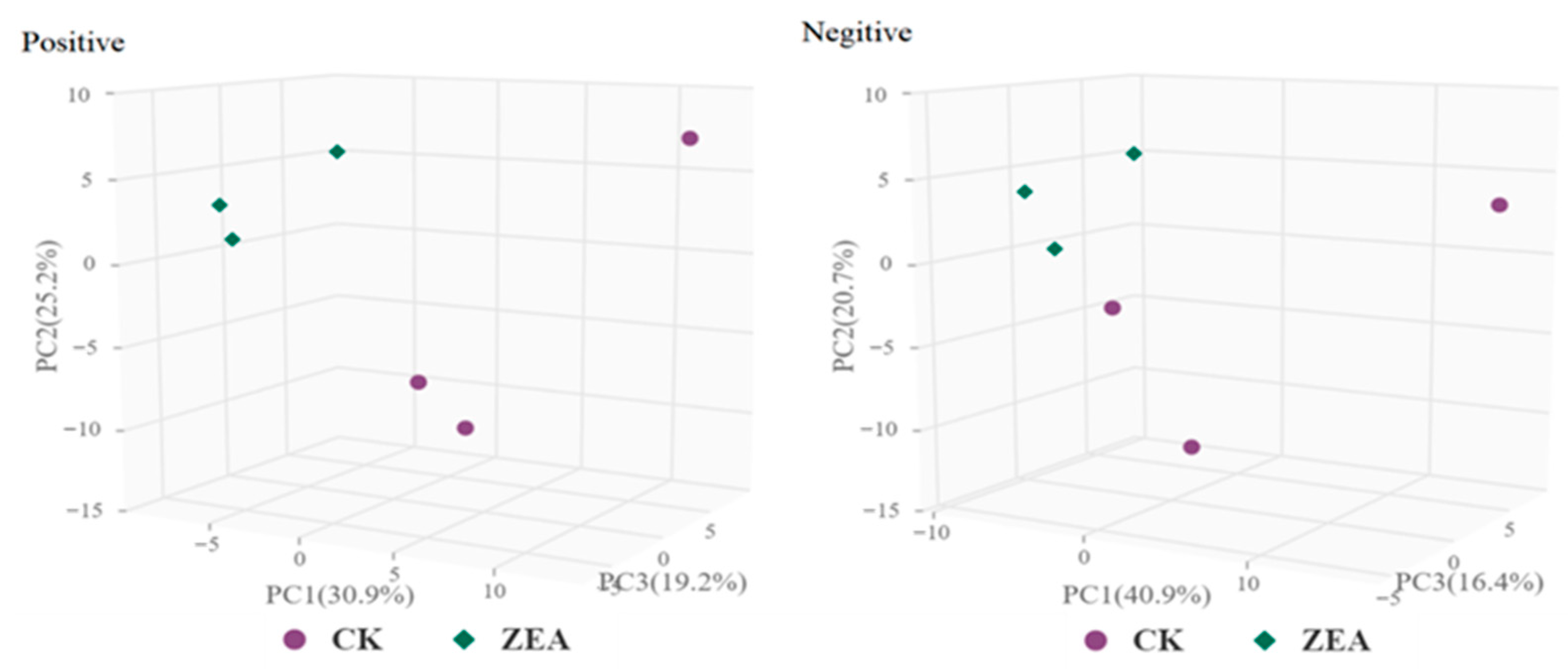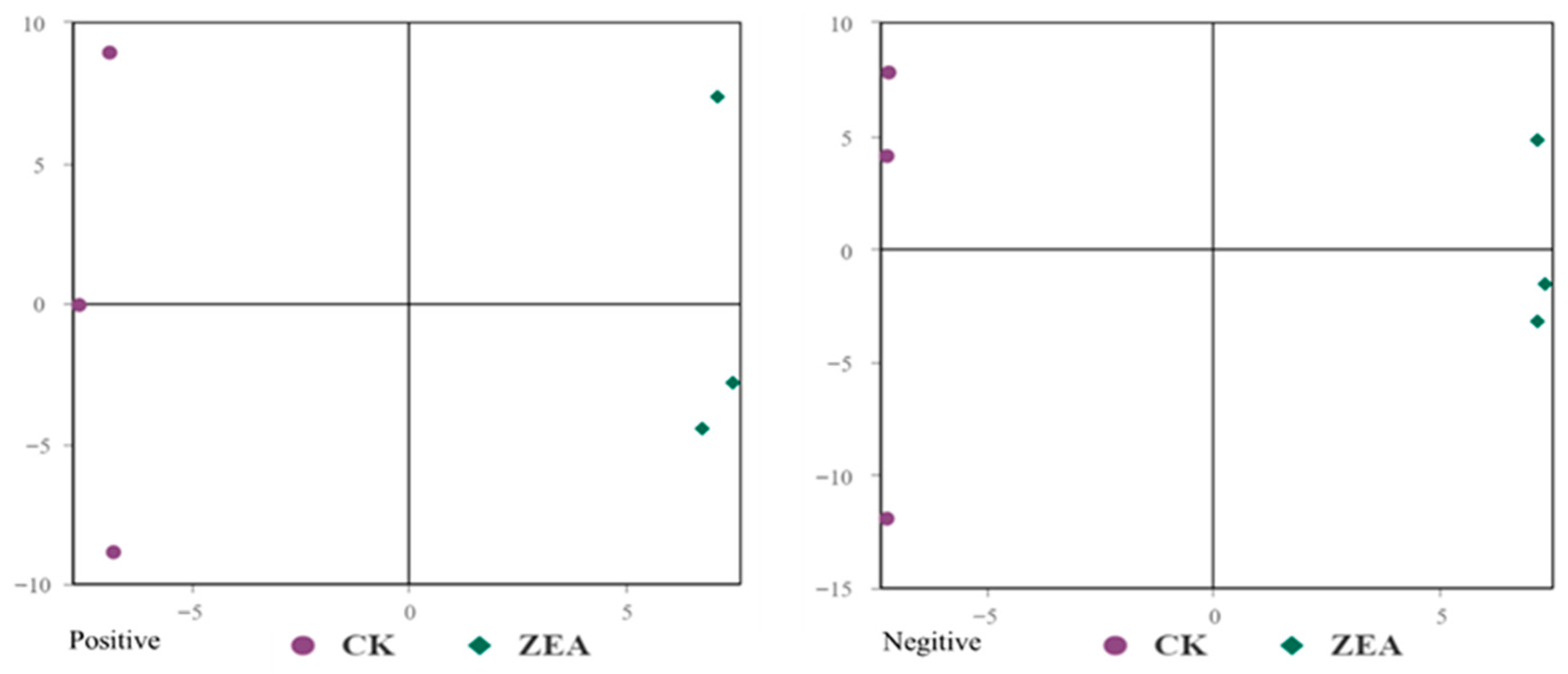 3.9. Untargeted Metabolomic Investigation of ZEA Effects on Goat LCs