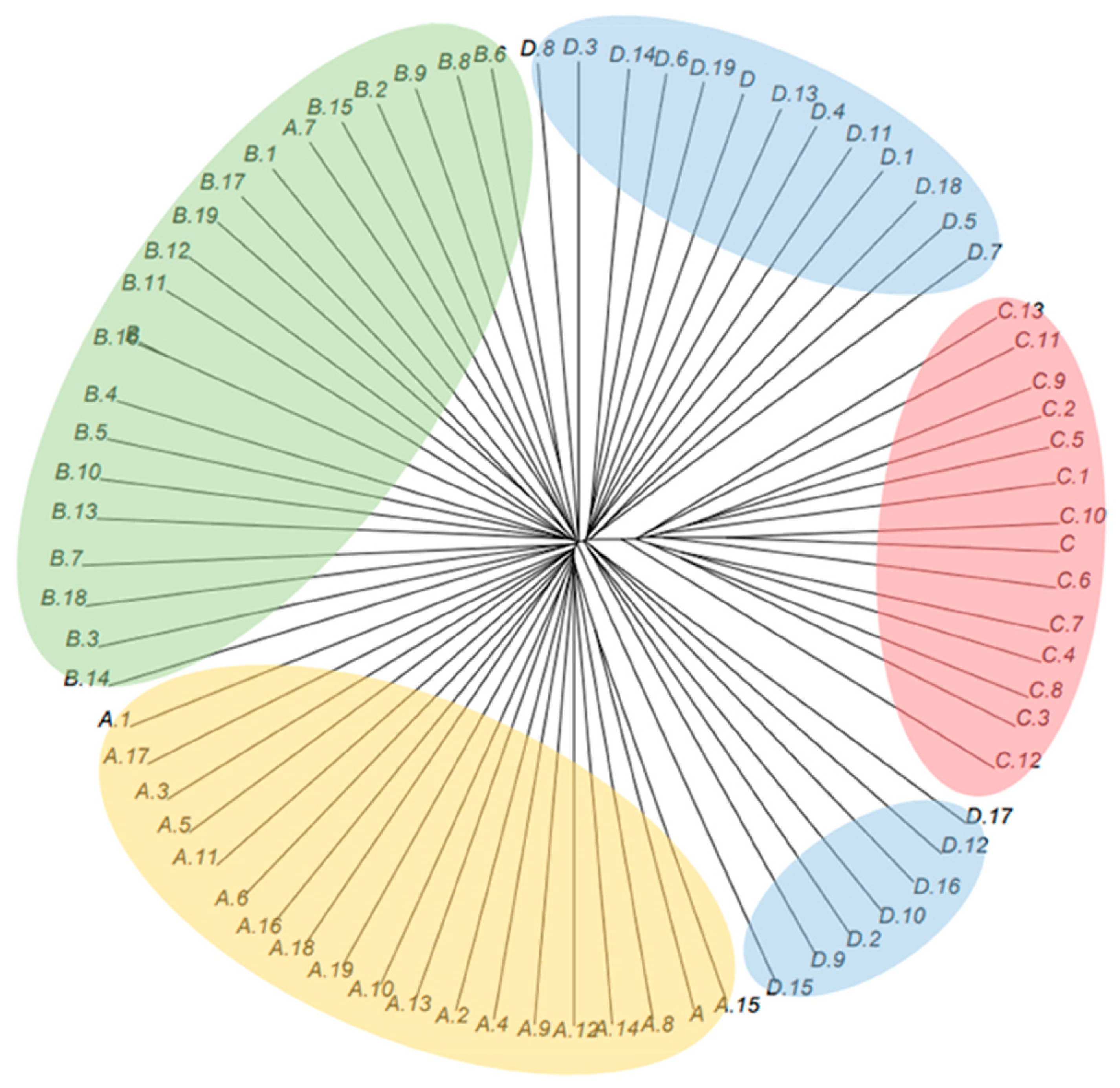 15. Kamvar, Z.N.; Tabima, J.F.; Grünwald, N.J. Poppr: An R package for genetic analysis of populations with clonal, partially clonal, and/or sexual reproduction. PeerJ 2014, 2, e281. [Google Scholar] [CrossRef]