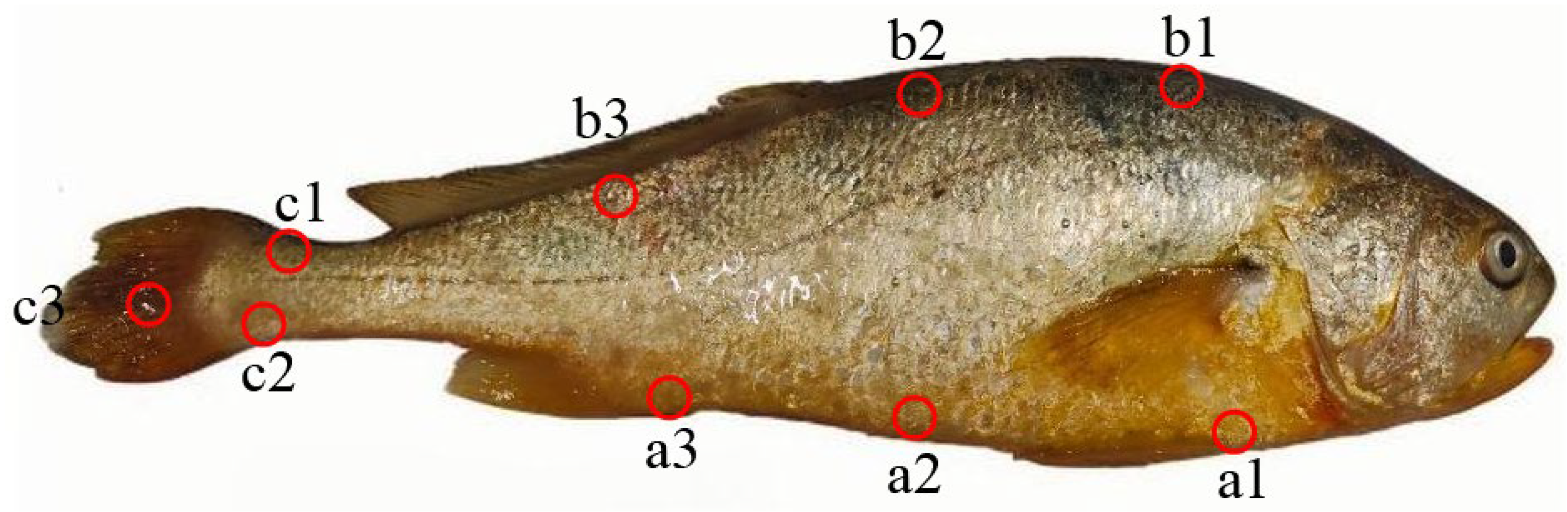 - SC/T 3123-2022; Rules for Evaluation of Cultured Large Yellow Croaker Quality Grade. Ministry of Agriculture and Fisheries Bureau: Beijing, China, 2022.