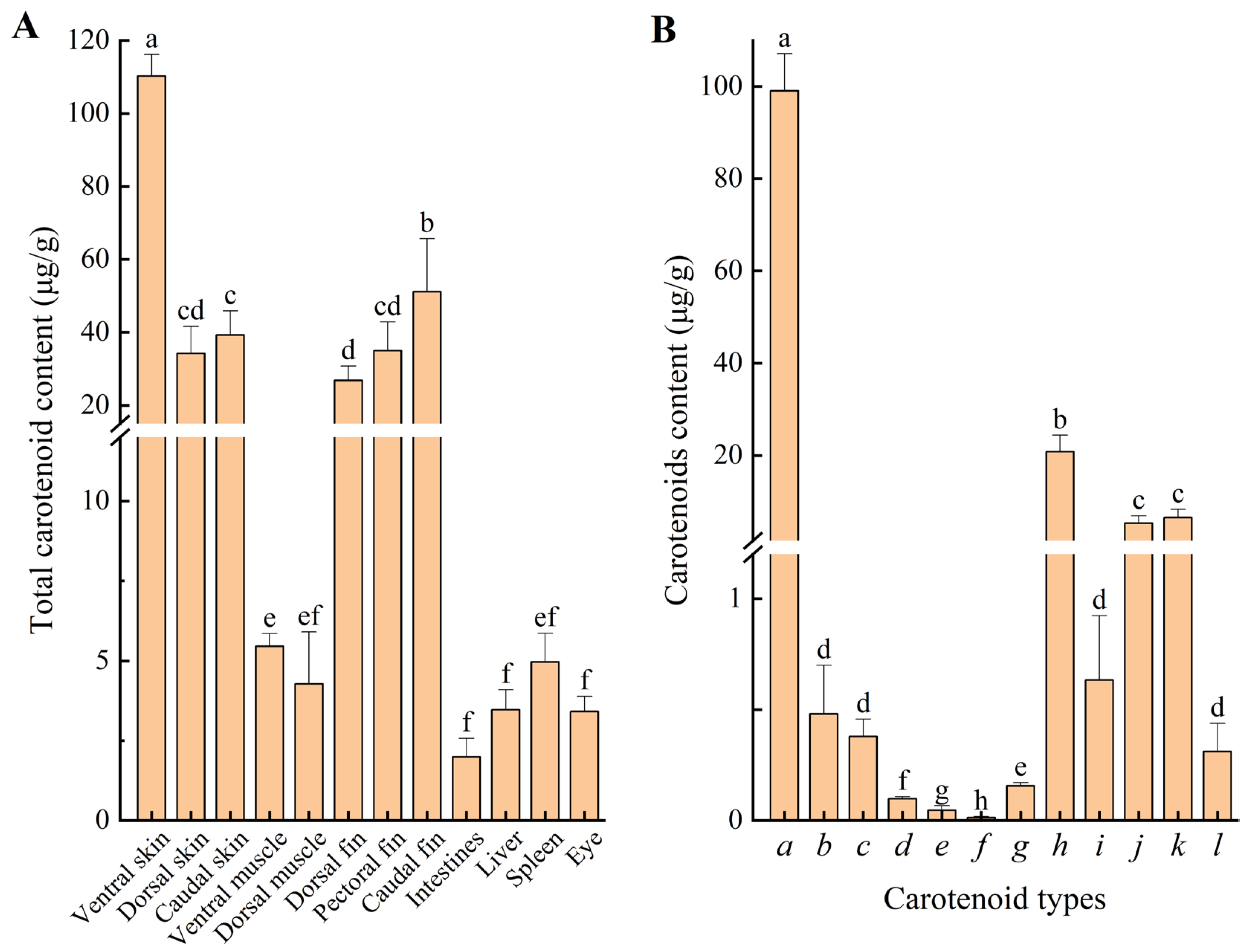 3.5. Carotenoids Content in Large Yellow Croaker