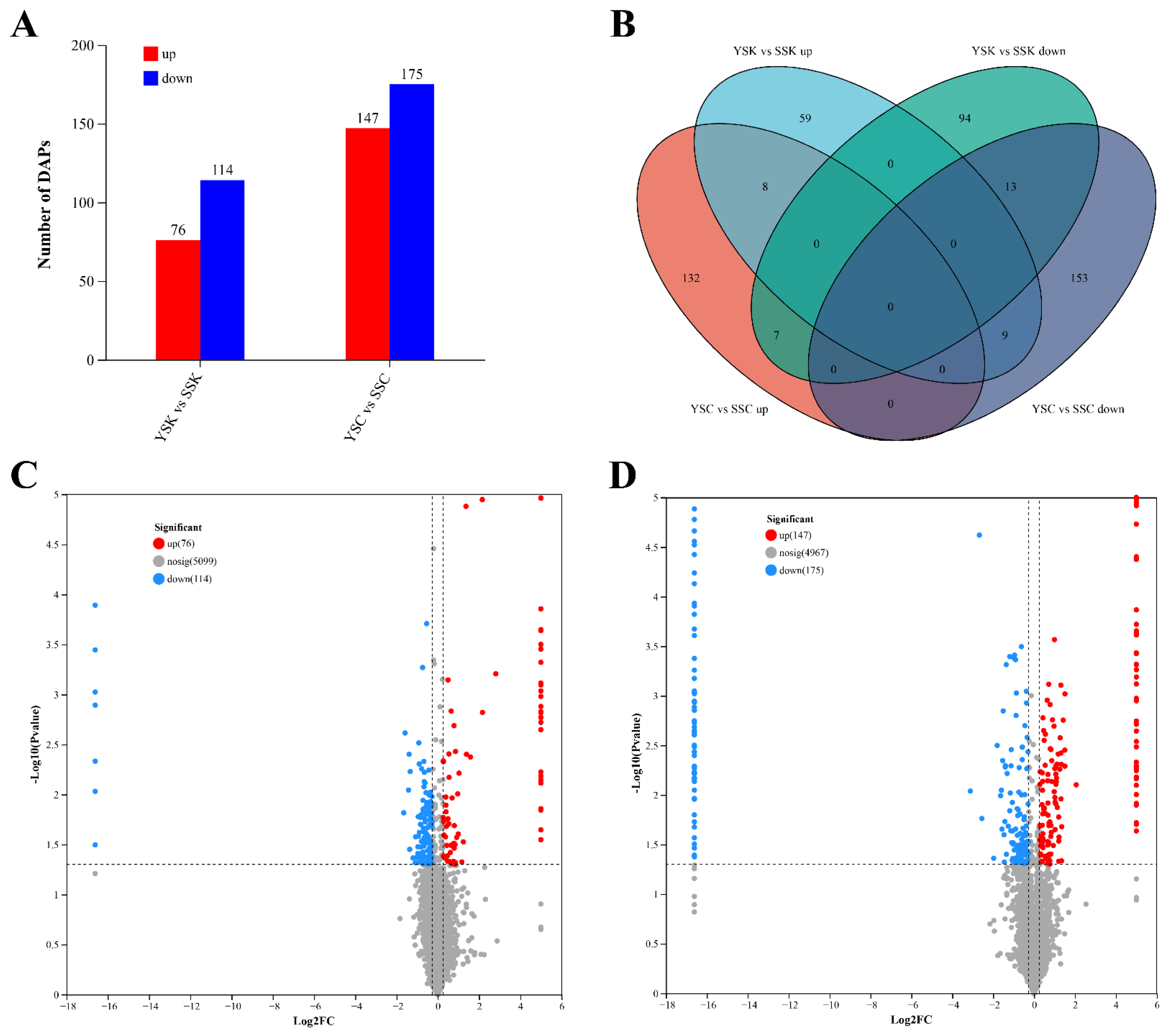 3.10. KEGG Pathways Analysis of DAPs