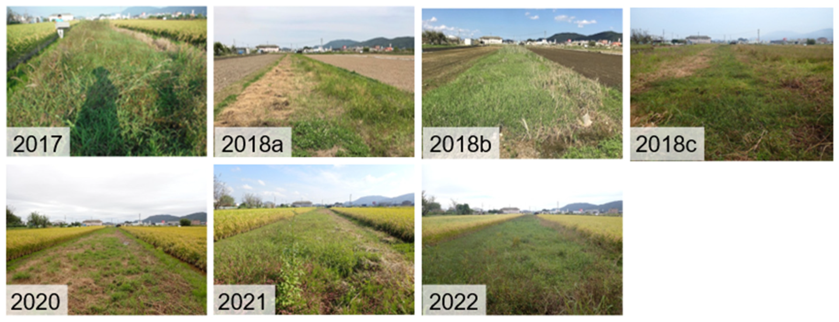 - Otsuka, T. Chapter 12: Where did organisms exclusive to rice fields live before rice fields existed? In Why Do Diverse Organisms Live in Rice Fields? Otsuka, T., Mineta, T., Eds.; Kyoto University Press: Kyoto, Japan, 2020; pp. 255–273. (In Japanese) [Google Scholar]