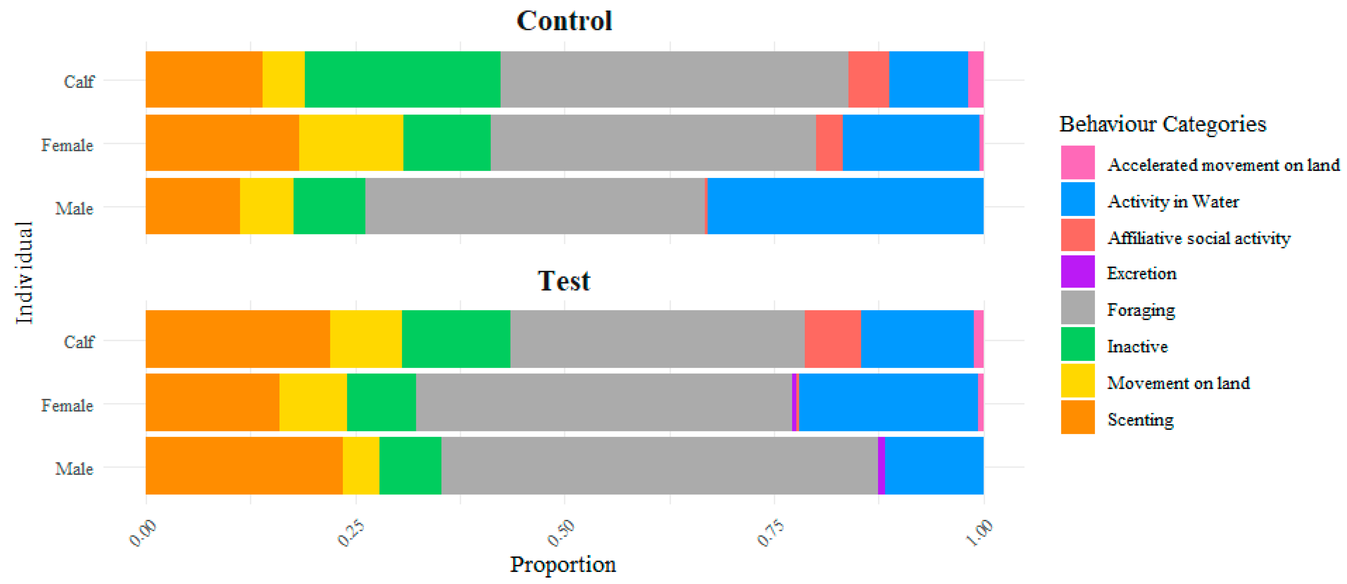 | Behavior | Male | Female | Calf |