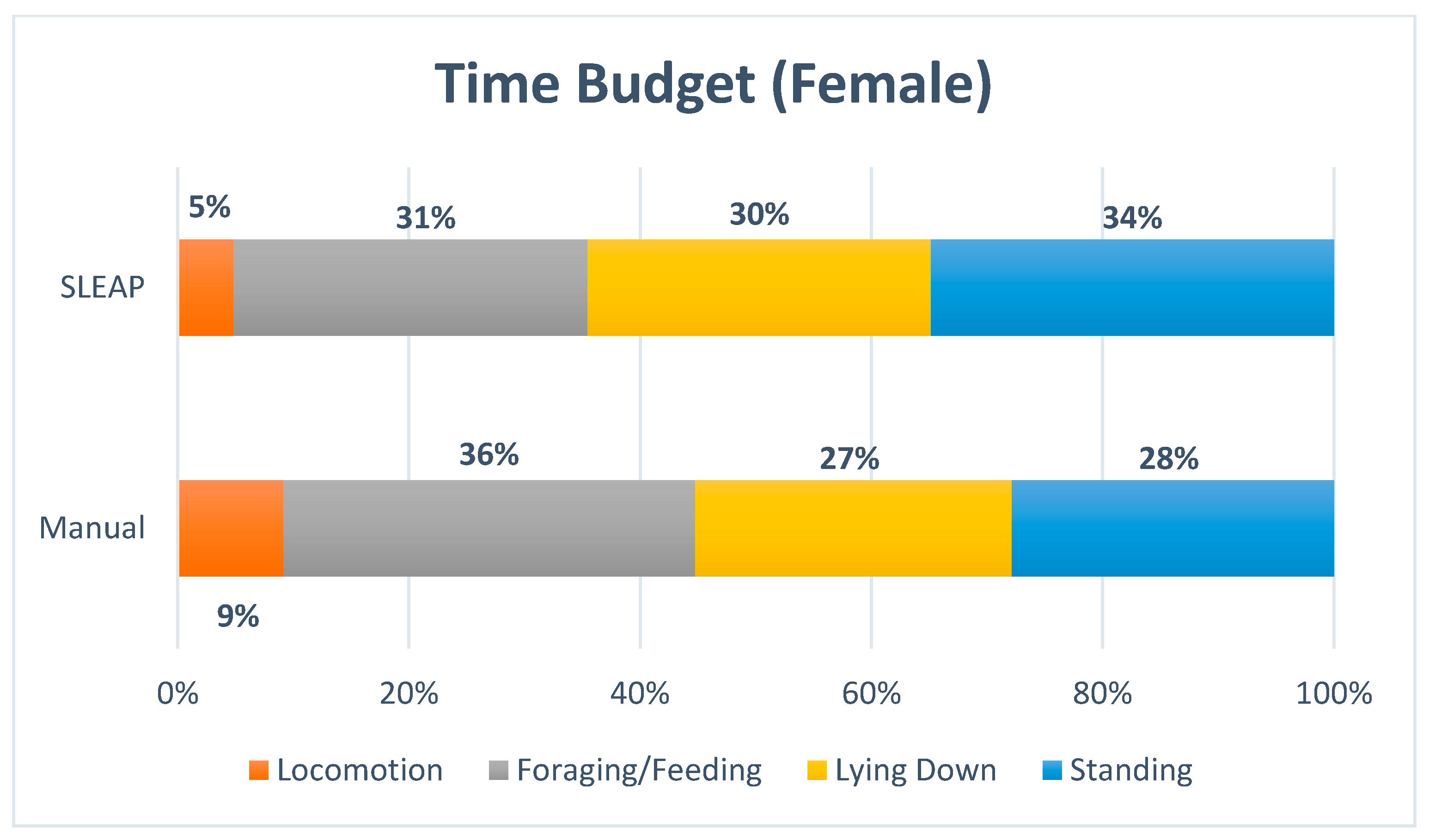 | Predicted by SLEAP | Behavior: | Standing | Lying Down | Foraging/Feeding | Locomotion | Out of View |