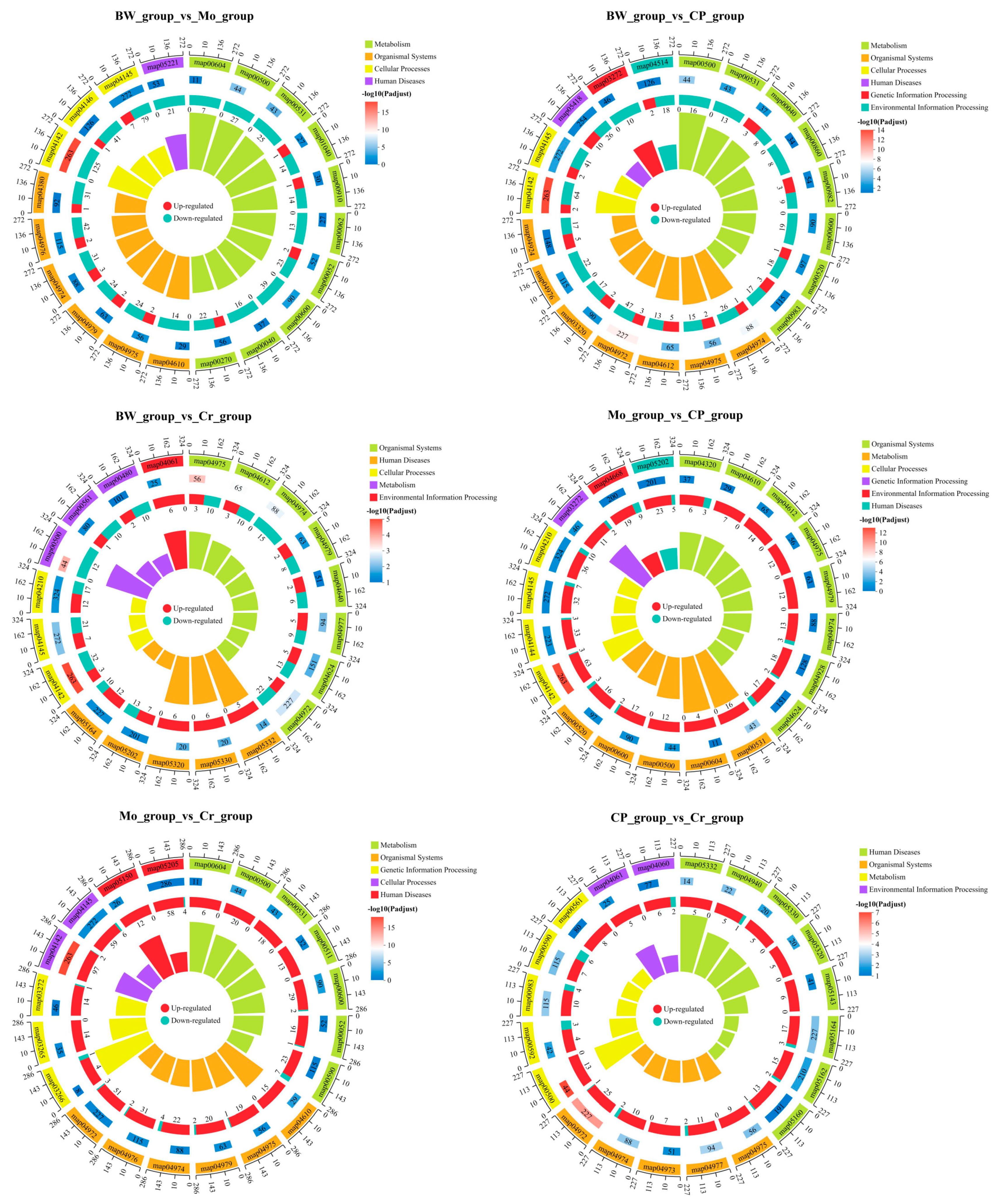 3.4. KEGG Pathway Enrichment Analysis of DEGs