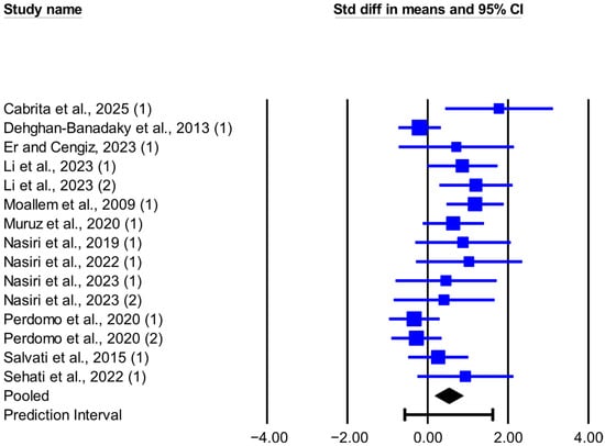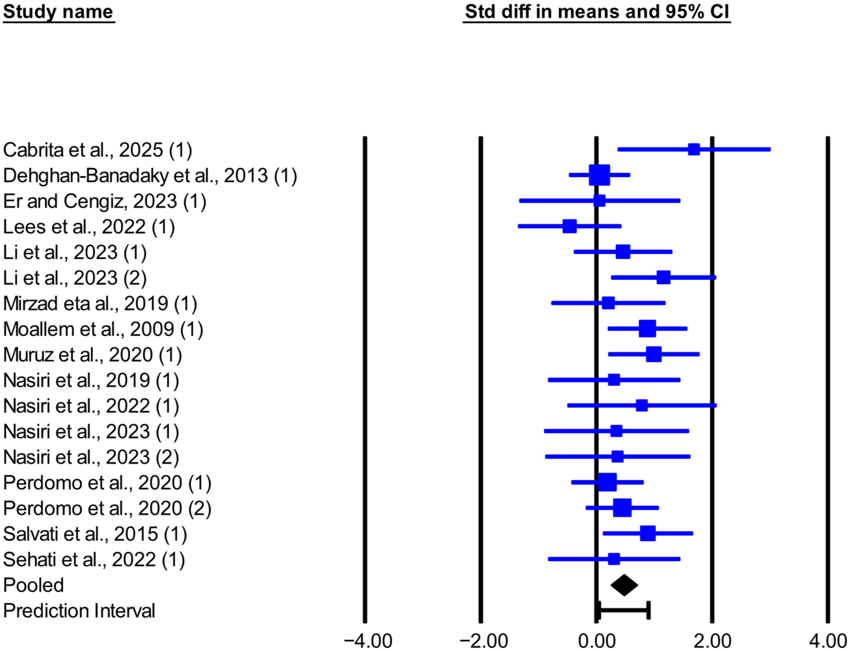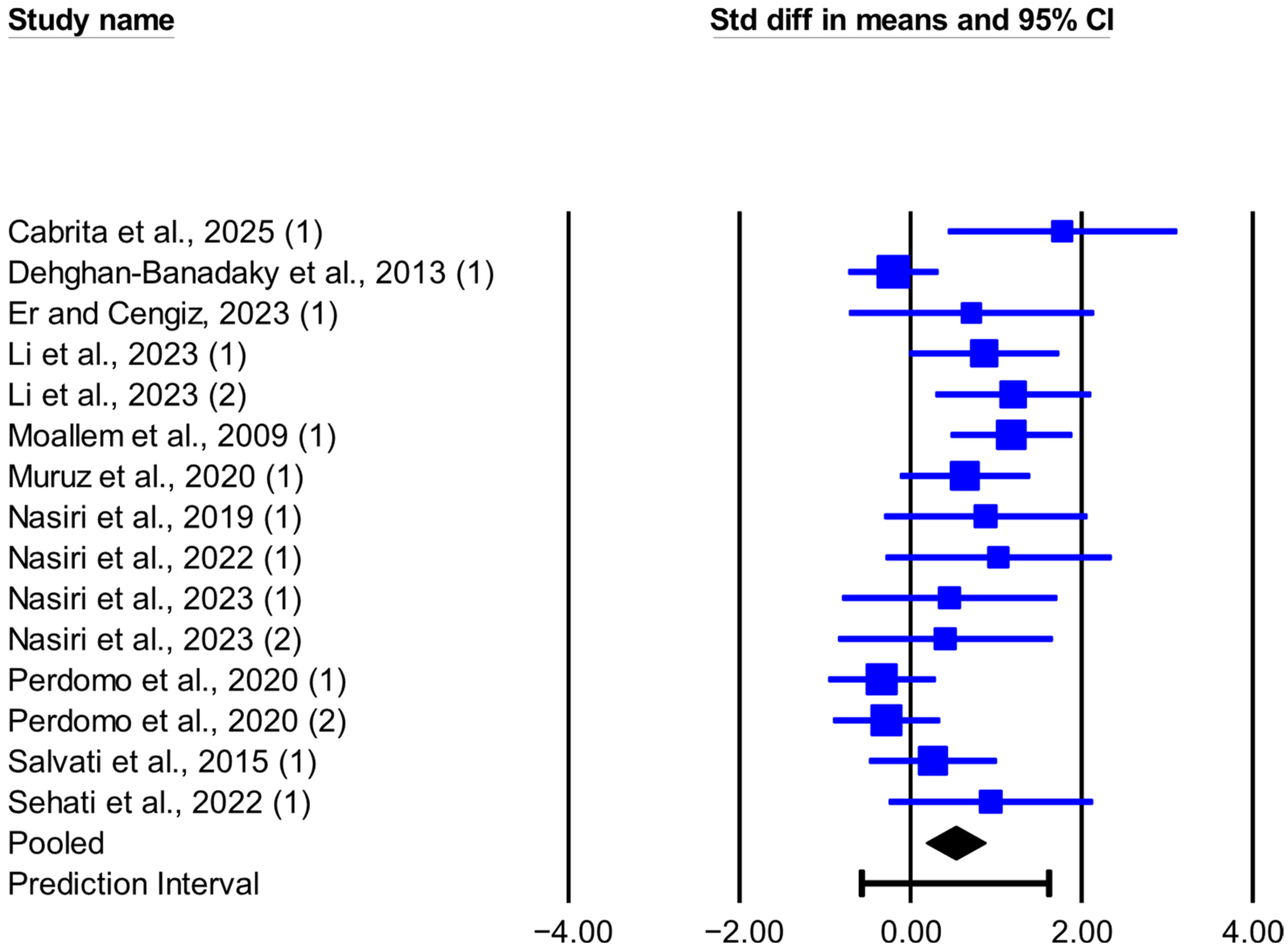 | DMI | 15 | 0.526 (0.184, 0.867) | 0.003 | −0.570, 1.621 | 30.667 | 0.006 | 54.349 | 0.008 | 0.304 (0.063, 0.545) |