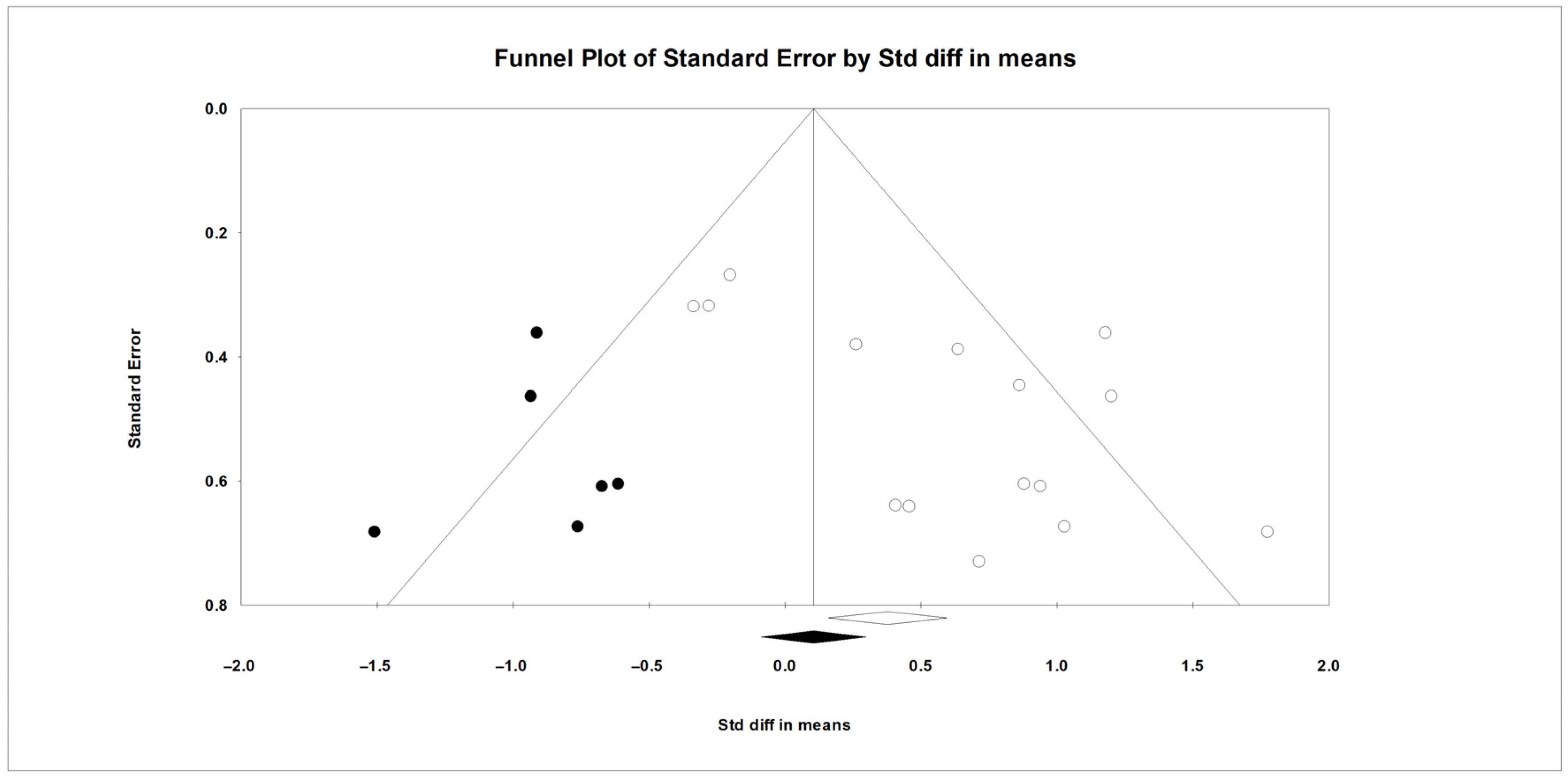- Egger, M.; Smith, G.D.; Schneider, M.; Minder, C. Bias in meta-analysis detected by a simple, graphical test. BMJ 1997, 315, 629–634. [Google Scholar] [CrossRef] [PubMed]