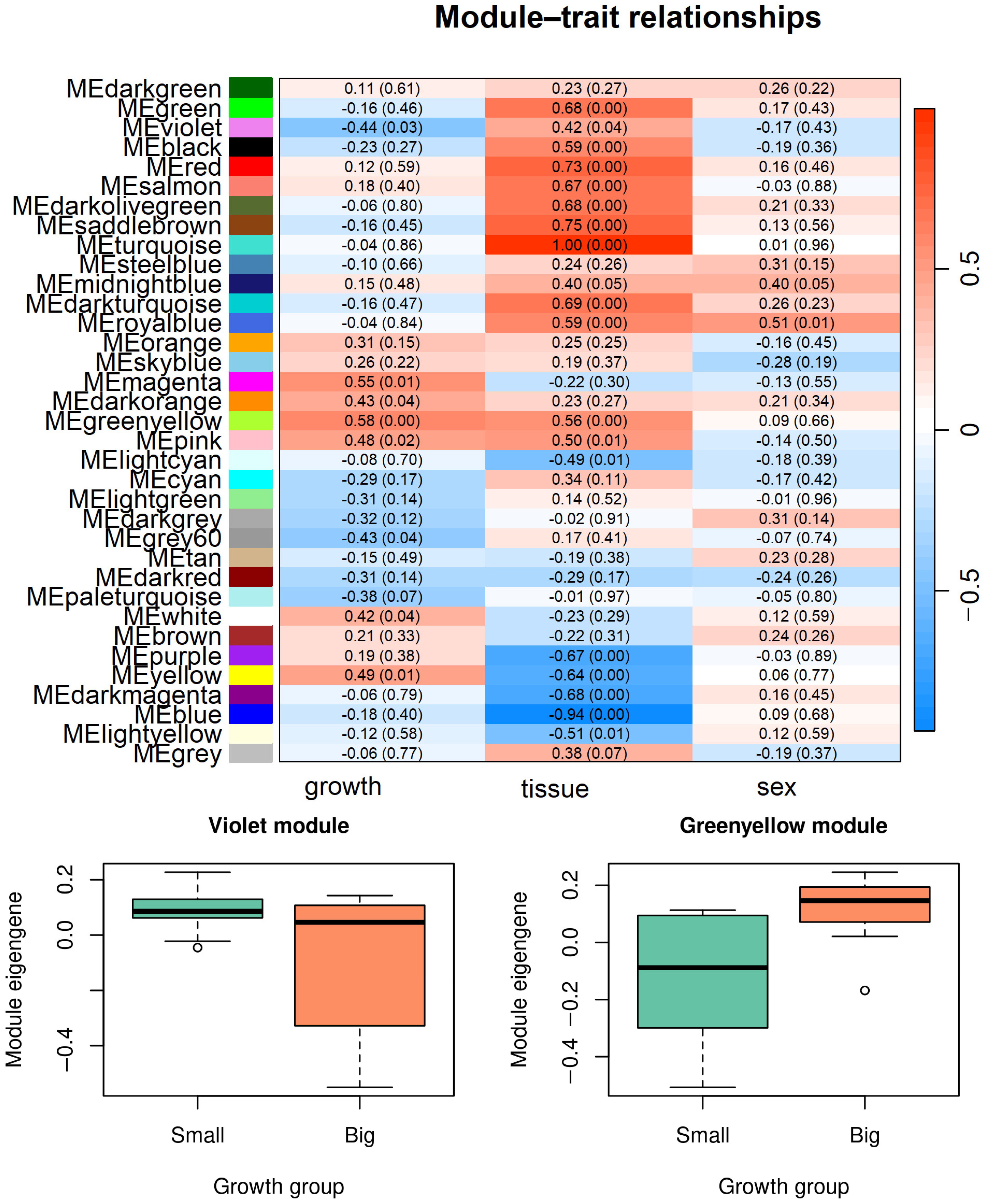 3.5. WGCNA for Liver and Brain Tissues
