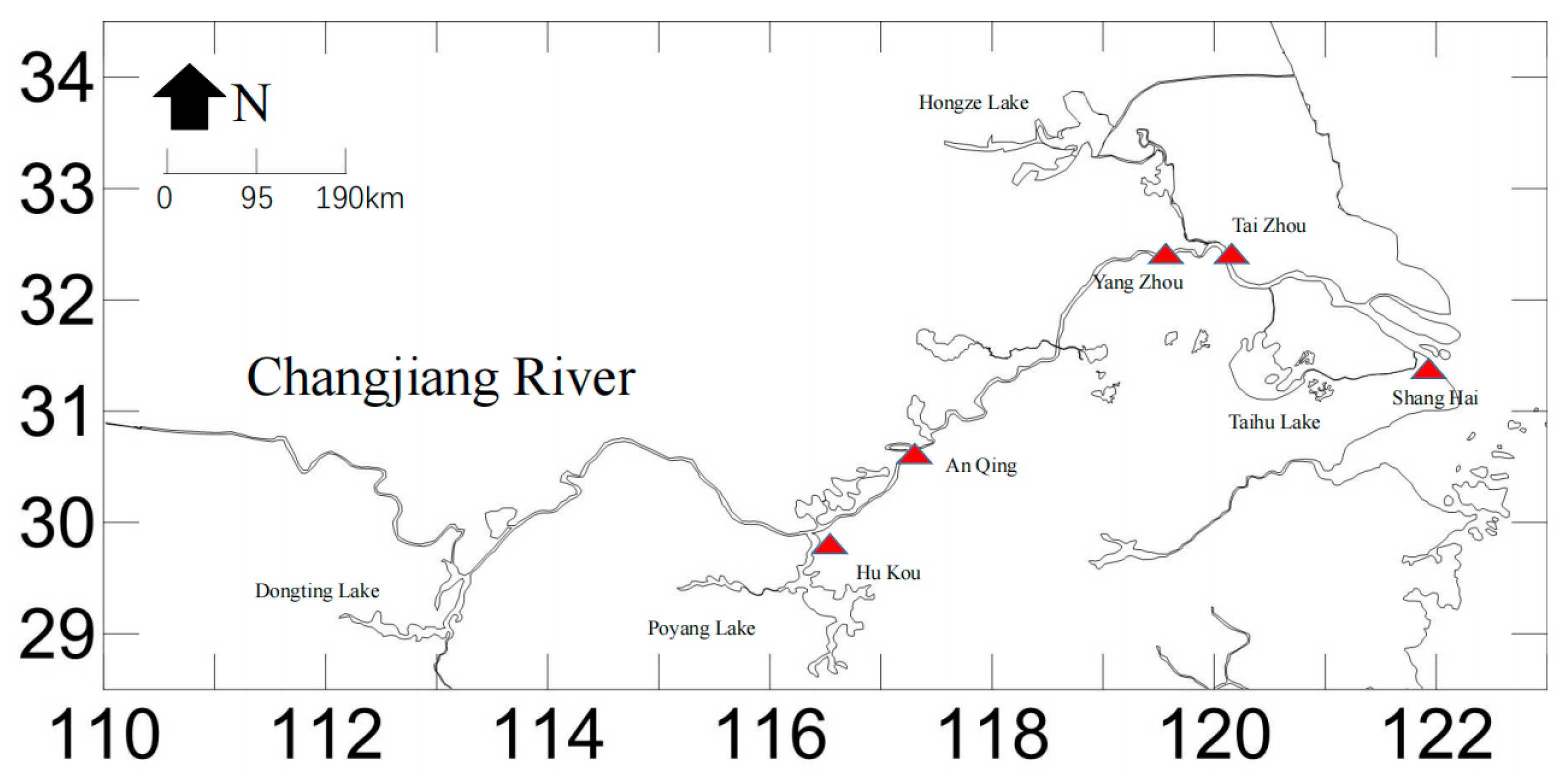 C. nasus is a migratory fish species, and their migration route is from the Yellow Sea to the mouth of the Yangtze River in Shanghai, and then upstream along the main channel of the Yangtze River. We collected samples along this route. Most