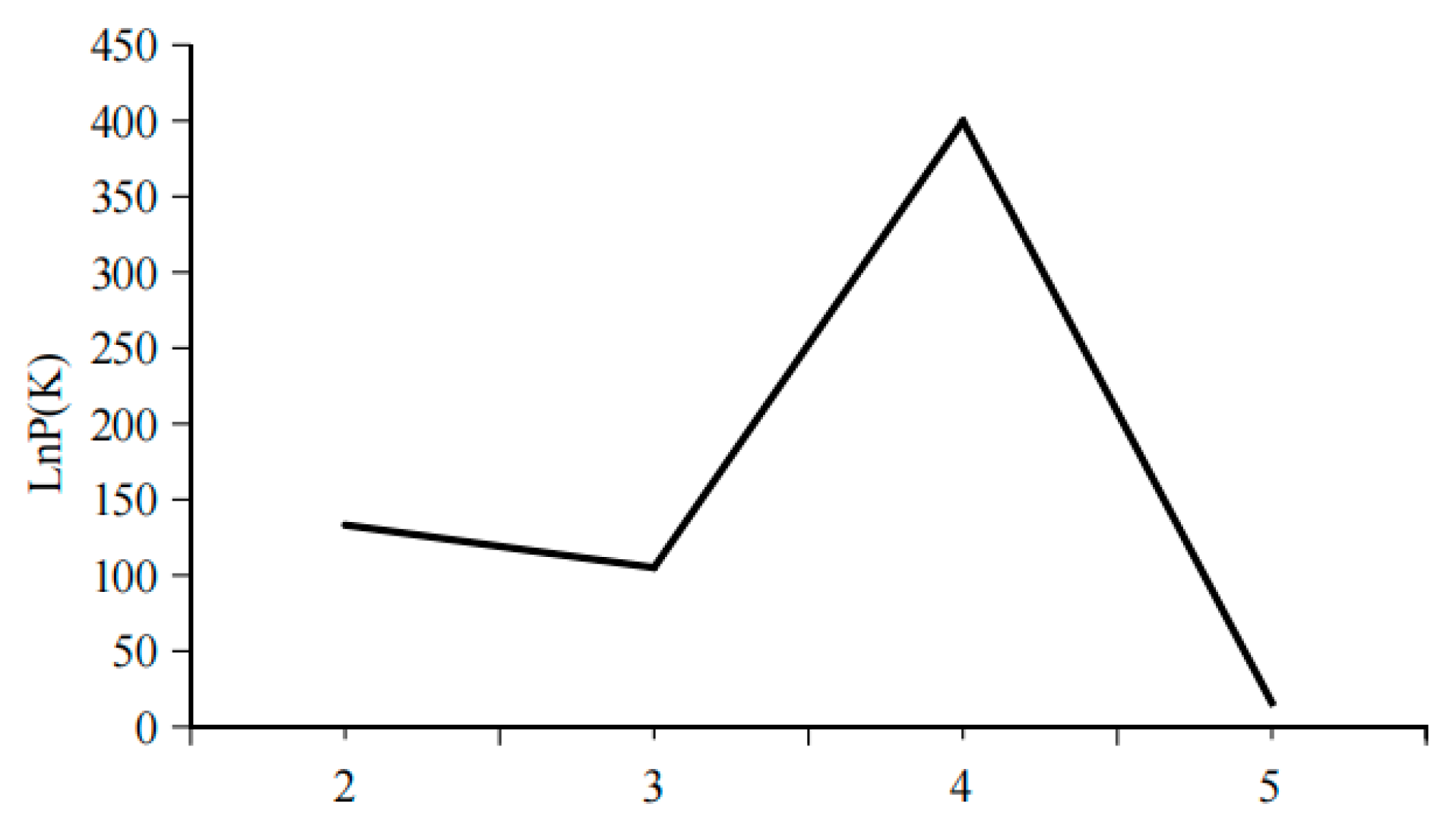 Structure is considered an ideal method for analyzing population genetic structure, as its computational process does not require prior knowledge of the genetic background of the populations. In this study, K values ranging from 2 to 5 were selected, with the number of repetitions set to twenty. The trends of K values and the mean of the related statistic Var[LnP(K)] were analyzed (