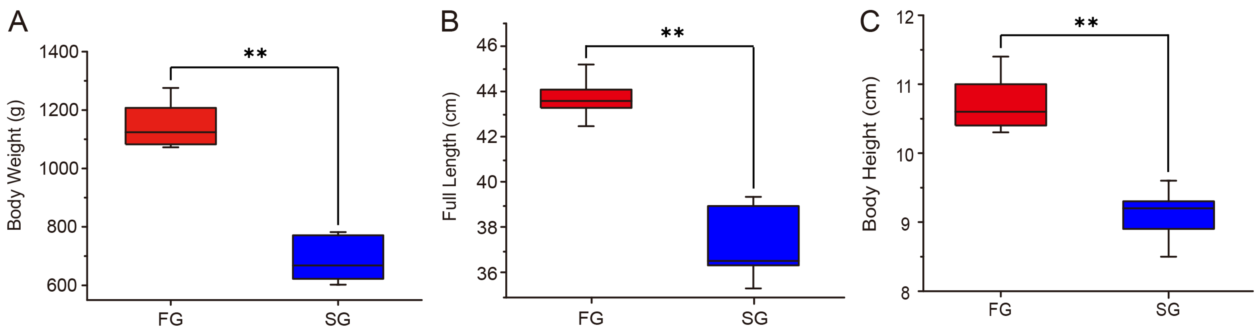 3.1. Analysis of Growth Data Between Fast-Growing (FG) and Slow-Growing (SG) Groups