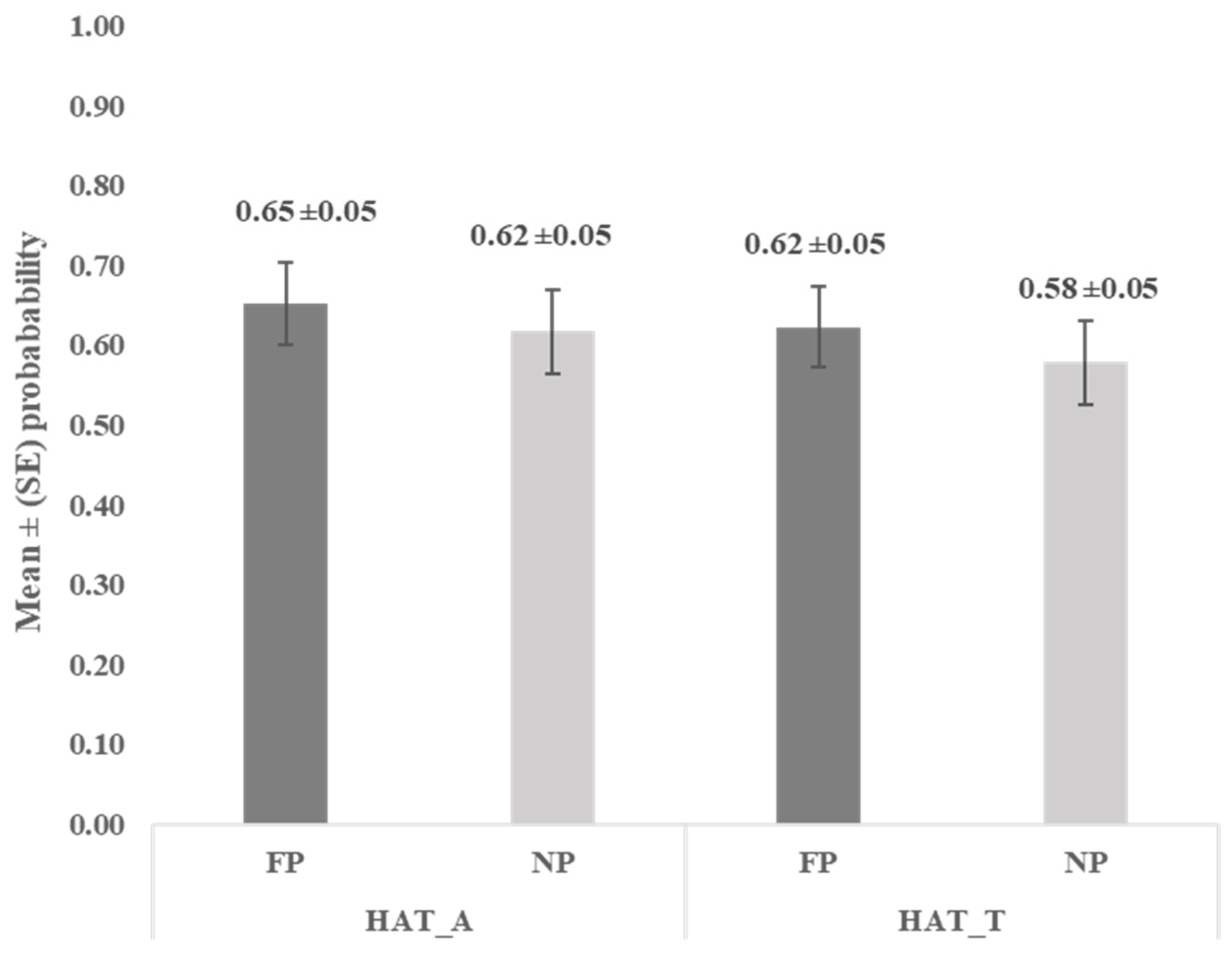 Since no differences were observed in the goats’ responses to the FP and NF persons in either the HAT or the PHs and AHs (details in the