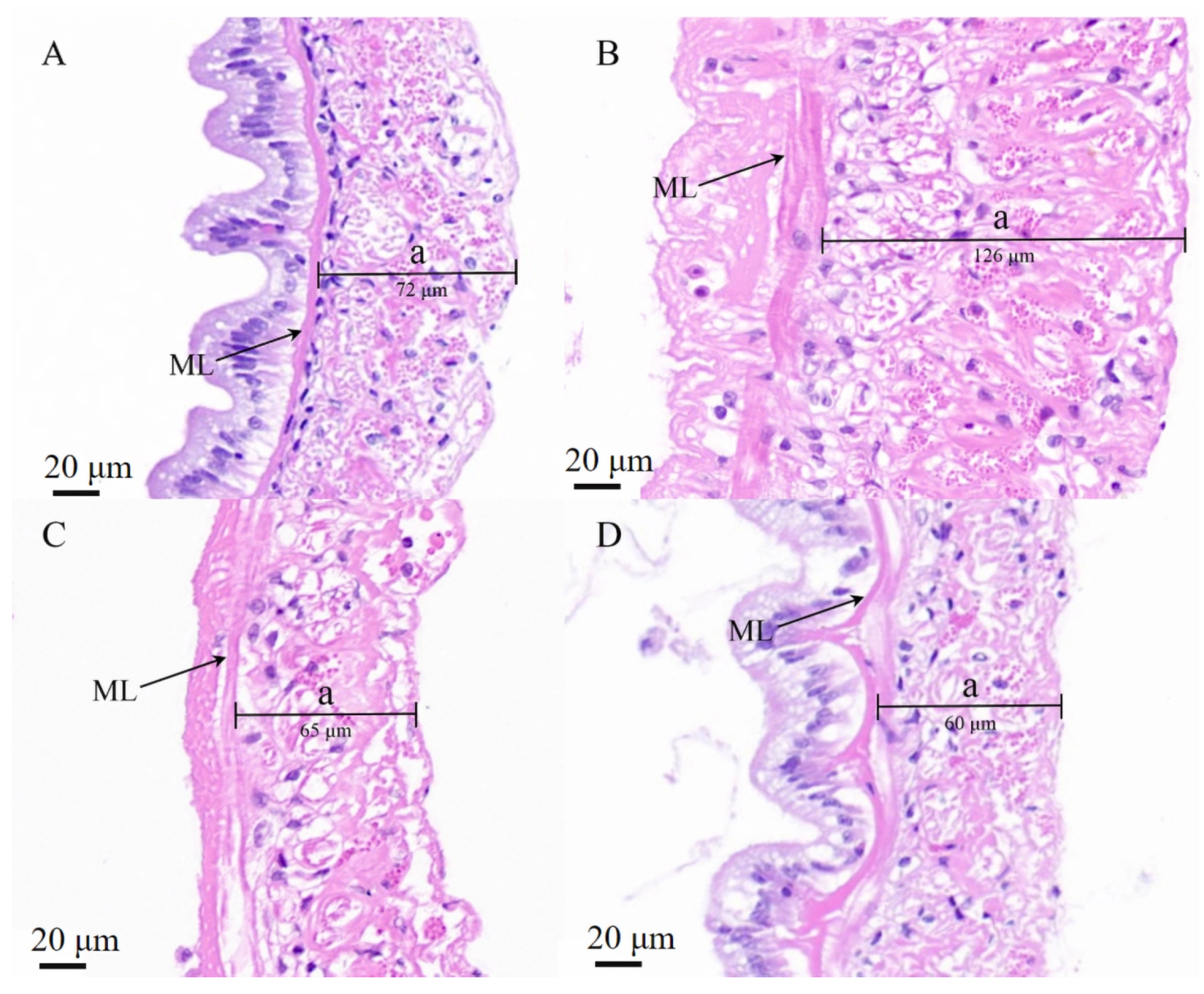 3.3. Changes of the Intestine Histological Structure of M. japonicus