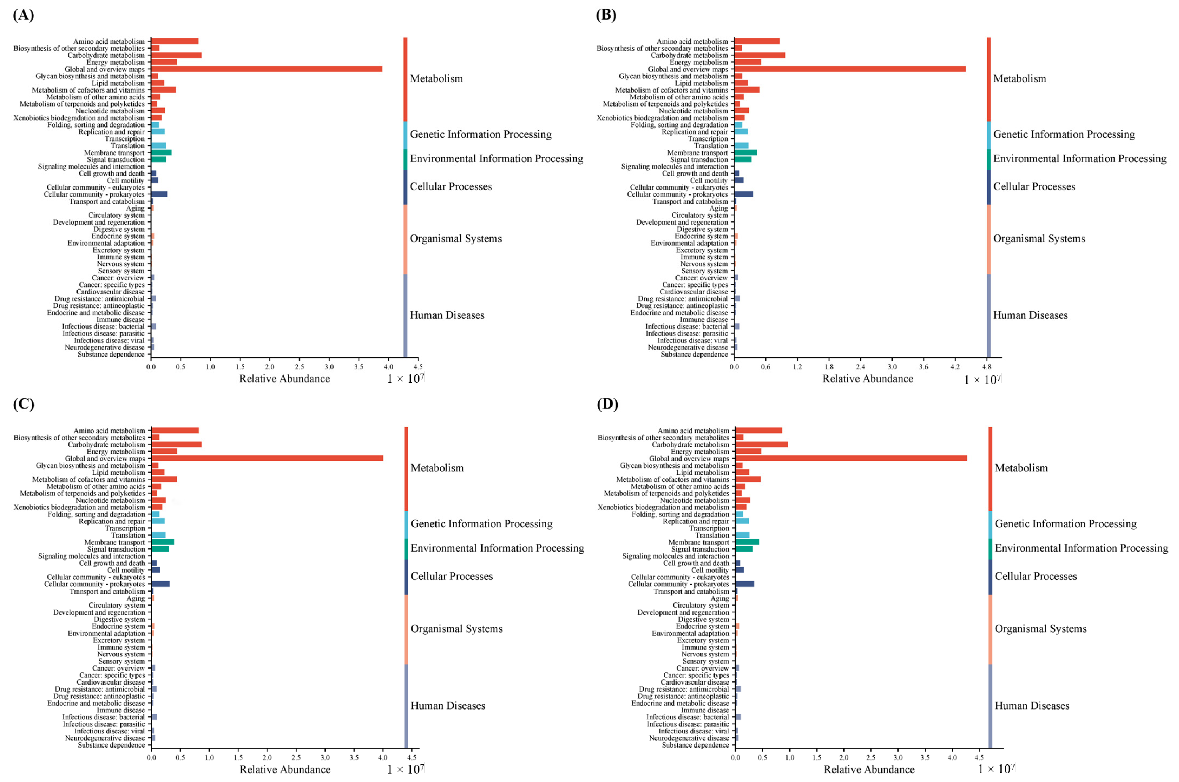 3.4.3. Effect of Sand Thickness on the Function of Gut Microbiota