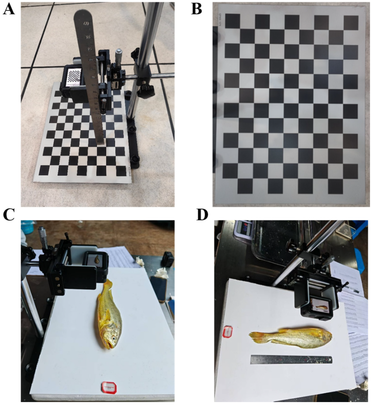 - Repeated measurements: During calibration, the pixel lengths or pixel areas of multiple checkerboard cells were repeatedly measured, and their mean value was used as the final scale parameter to minimize single-frame measurement error.