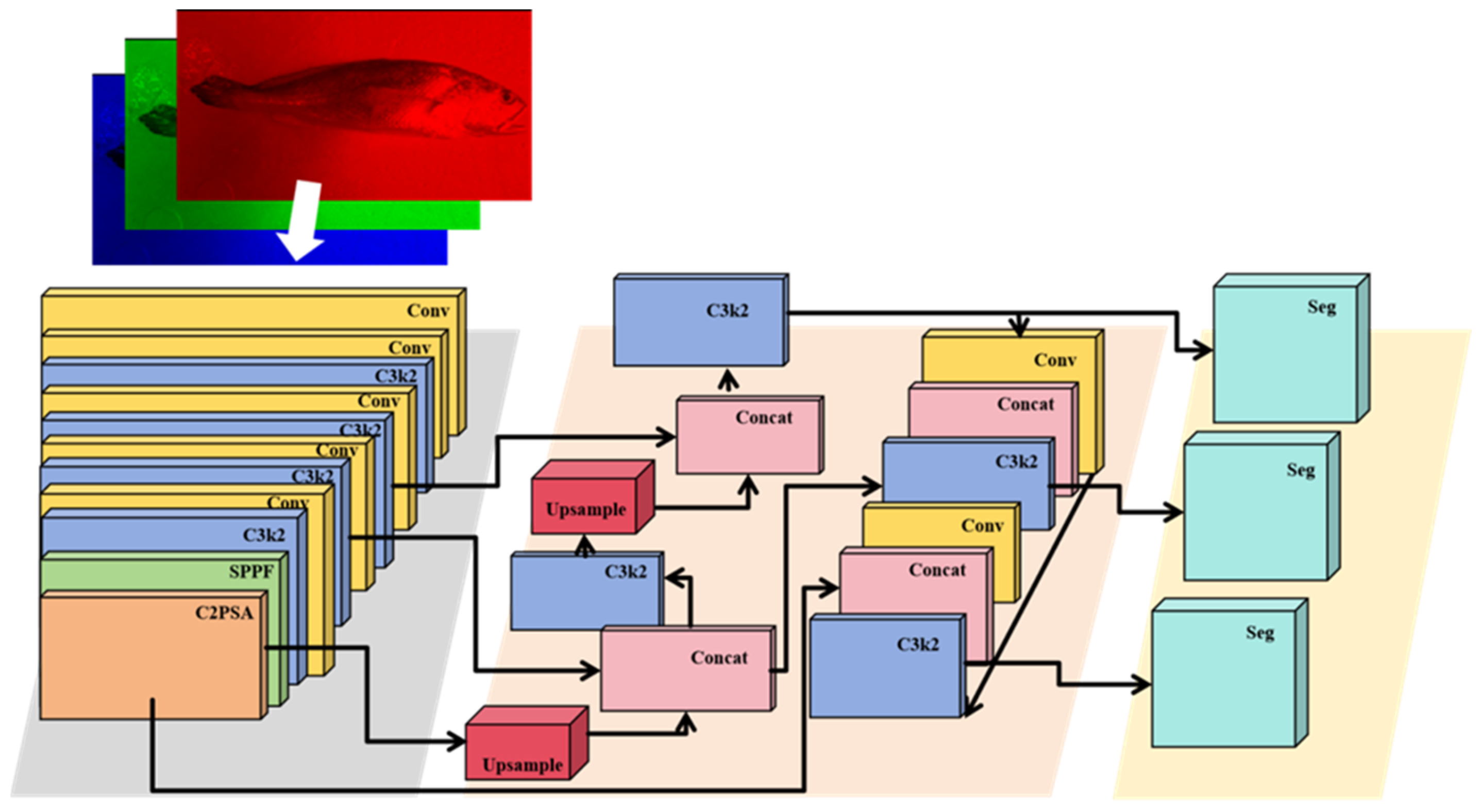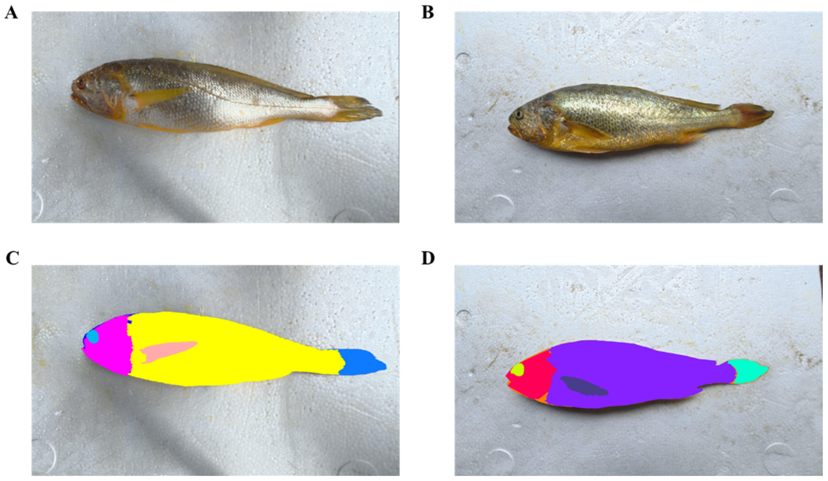 - Zhang, C.; Zhao, Y.; Yang, W.; Gao, L.; Zhang, W.; Liu, Y.; Zhang, X.; Wang, H. Computer Vision-Based Deep Learning Modeling for Salmon Part Segmentation and Defect Identification. Foods 2025, 14, 3529. [Google Scholar] [CrossRef]