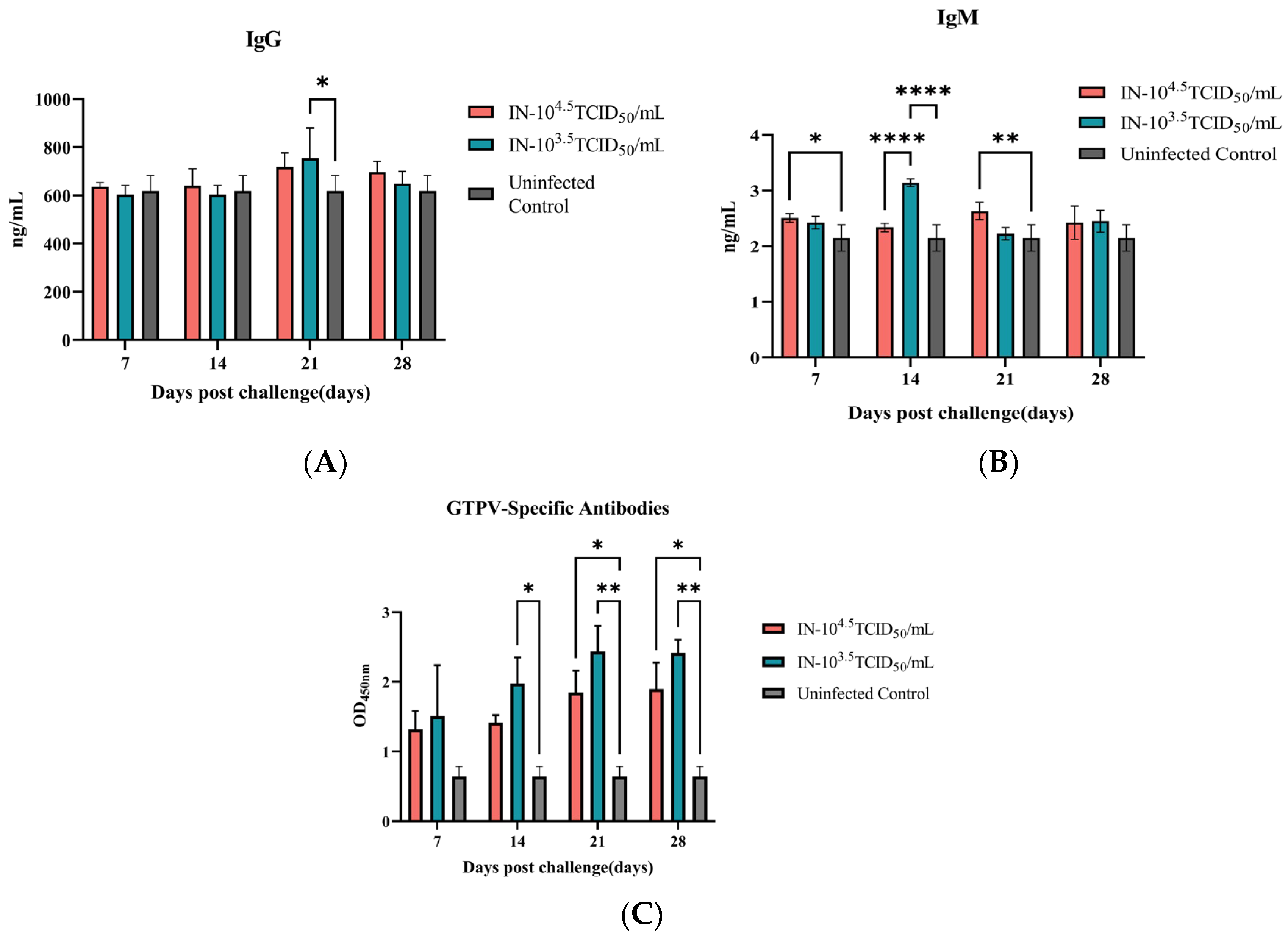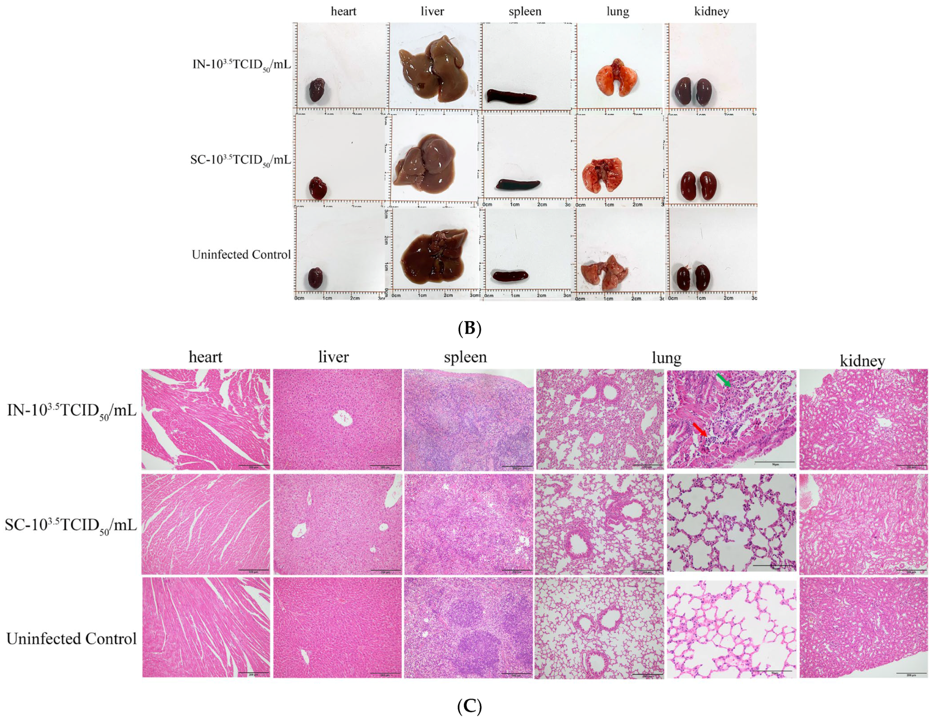 | SC-103.5 | Subcutaneous (SC) | 103.5 TCID50 | 3 | Compare infection routes | |