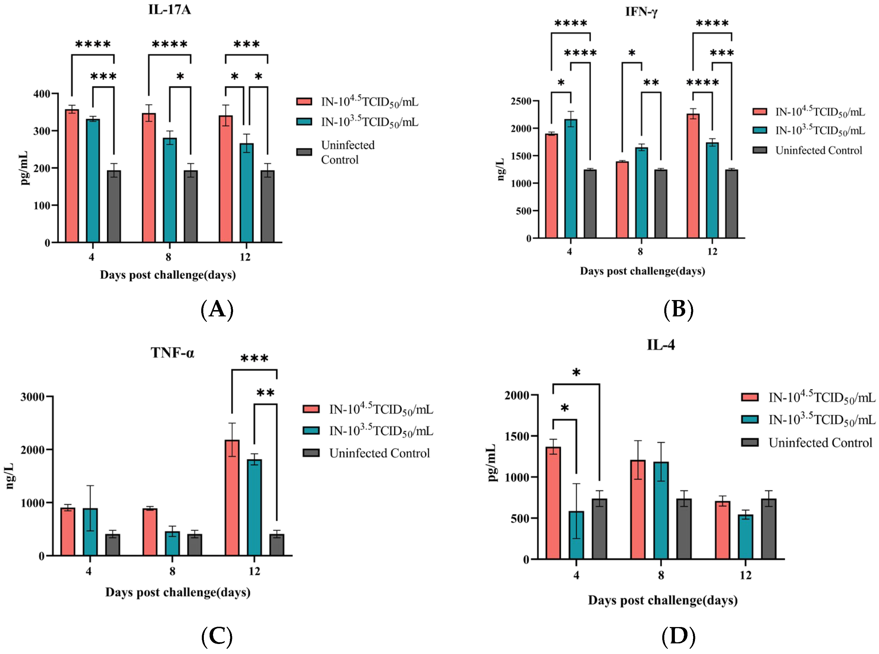 | 2 (Dose) | IN-104.5 | Intranasal (IN) | 104.5 TCID50 | 12 | Evaluate dose–response |