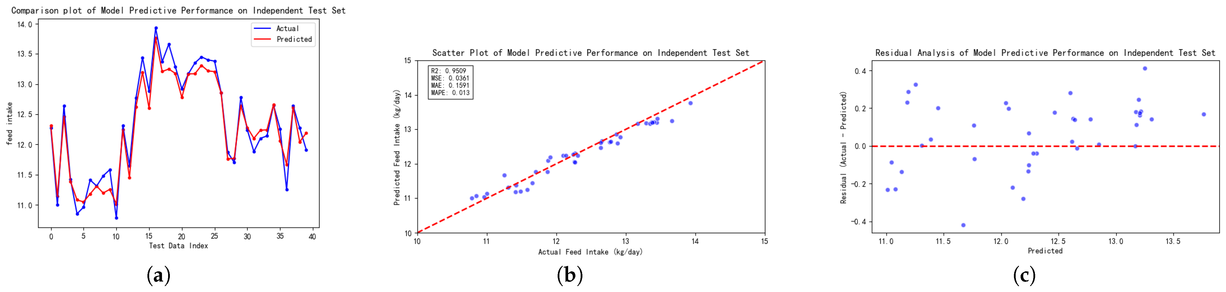 The independent test set was constructed using supplementary data collected under the same experimental conditions as the original dataset. Specifically, this dataset comprises additional samples obtained from the same group of Holstein heifers during the same 20-day experimental period at the experimental farm of Northeast Agricultural University. Although the experimental environment and sampling protocol remained consistent, all samples in the independent test set were strictly excluded from model training and initial testing, thereby serving as unseen samples for evaluating sample-level generalization performance under identical experimental conditions.