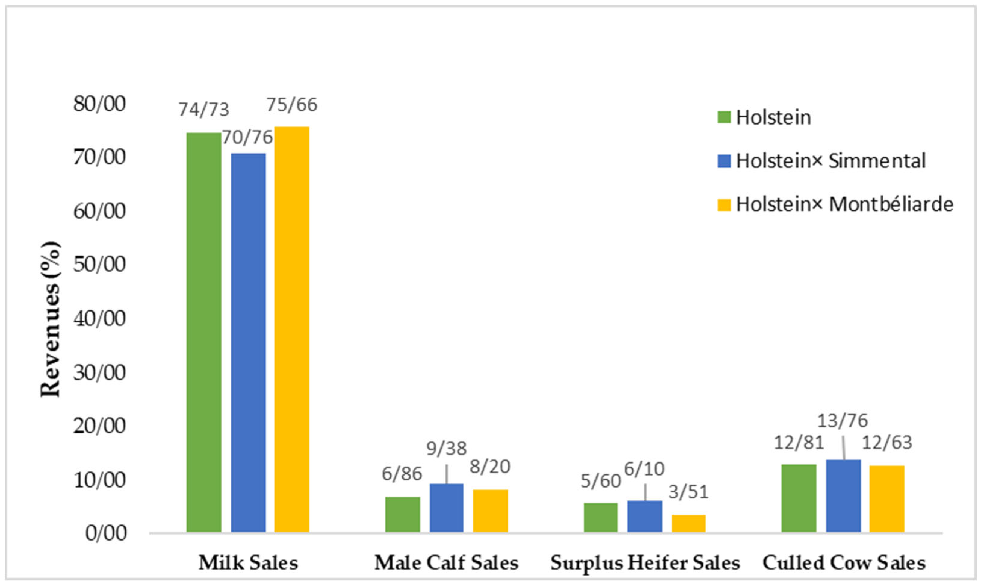 Throughout this manuscript, the term genotype is used exclusively to denote the breed groups under comparison, namely Holstein, Montbéliarde × Holstein, and Simmental × Holstein. No molecular genetic analyses were performed; instead, differences among these breed groups were evaluated based on recorded phenotypic and economic data.