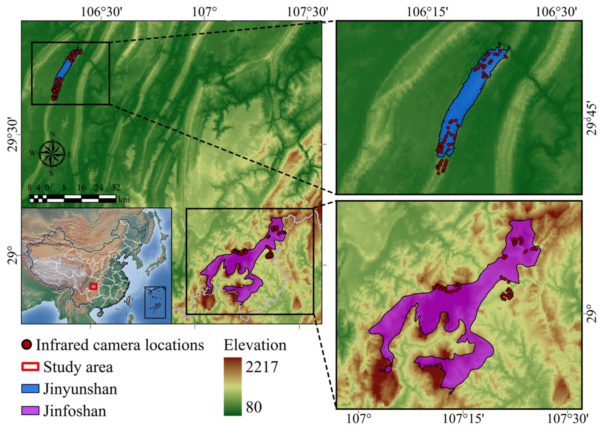 APA StyleGuo, Z., Zhu, H., He, J., Shen, L., & Xia, W. (2026). Effects of Anthropogenic Disturbance on Mammal Community Diversity and Activity Patterns: Evidence from the Jinfoshan and Jinyunshan National Nature Reserves, China. Animals, 16(5), 695. https://doi.org/10.3390/ani16050695