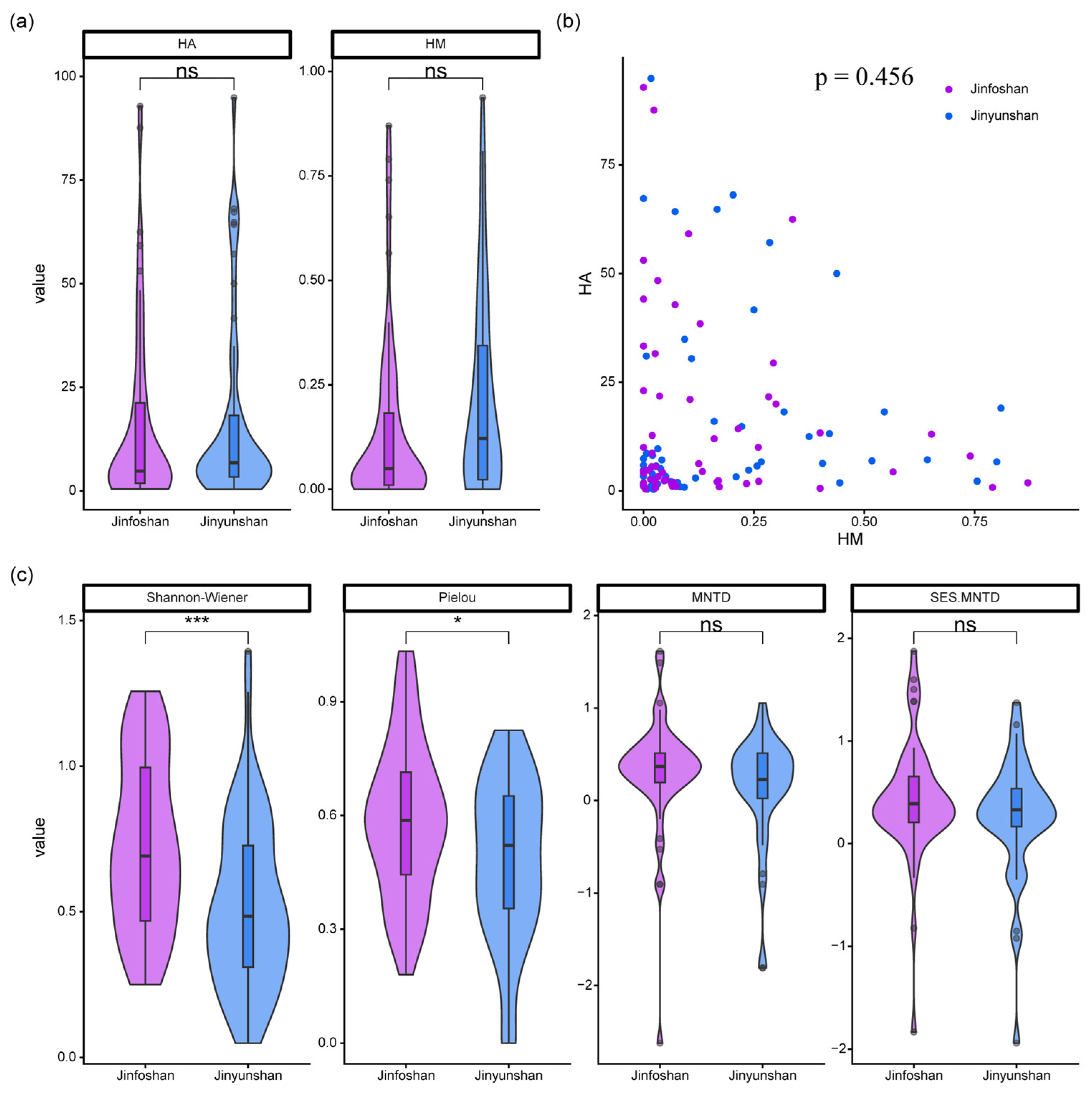 - Kembel, S.W.; Cowan, P.D.; Helmus, M.R.; Cornwell, W.K.; Morlon, H.; Ackerly, D.D.; Blomberg, S.P.; Webb, C.O. Picante: R tools for integrating phylogenies and ecology. Bioinformatics 2010, 26, 1463–1464. [Google Scholar] [CrossRef]