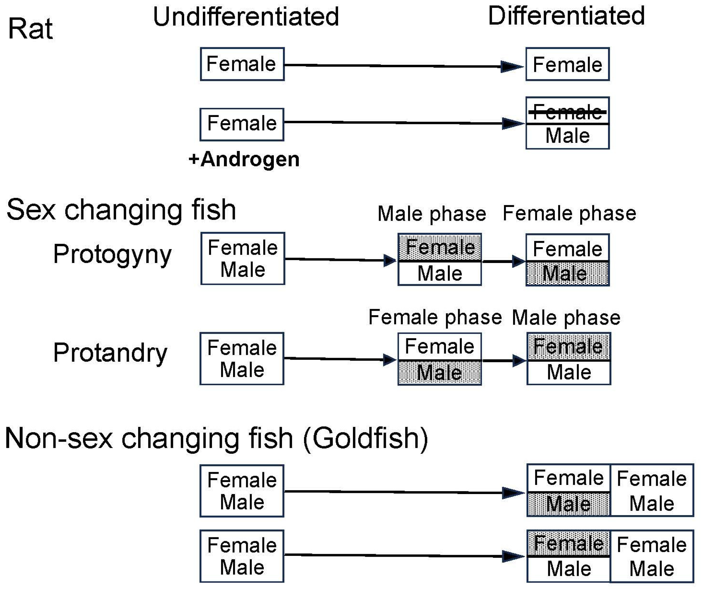 7.3. Sexual Bipotentiality of Secondary Sexual Characteristics and Gonadal Differentiation