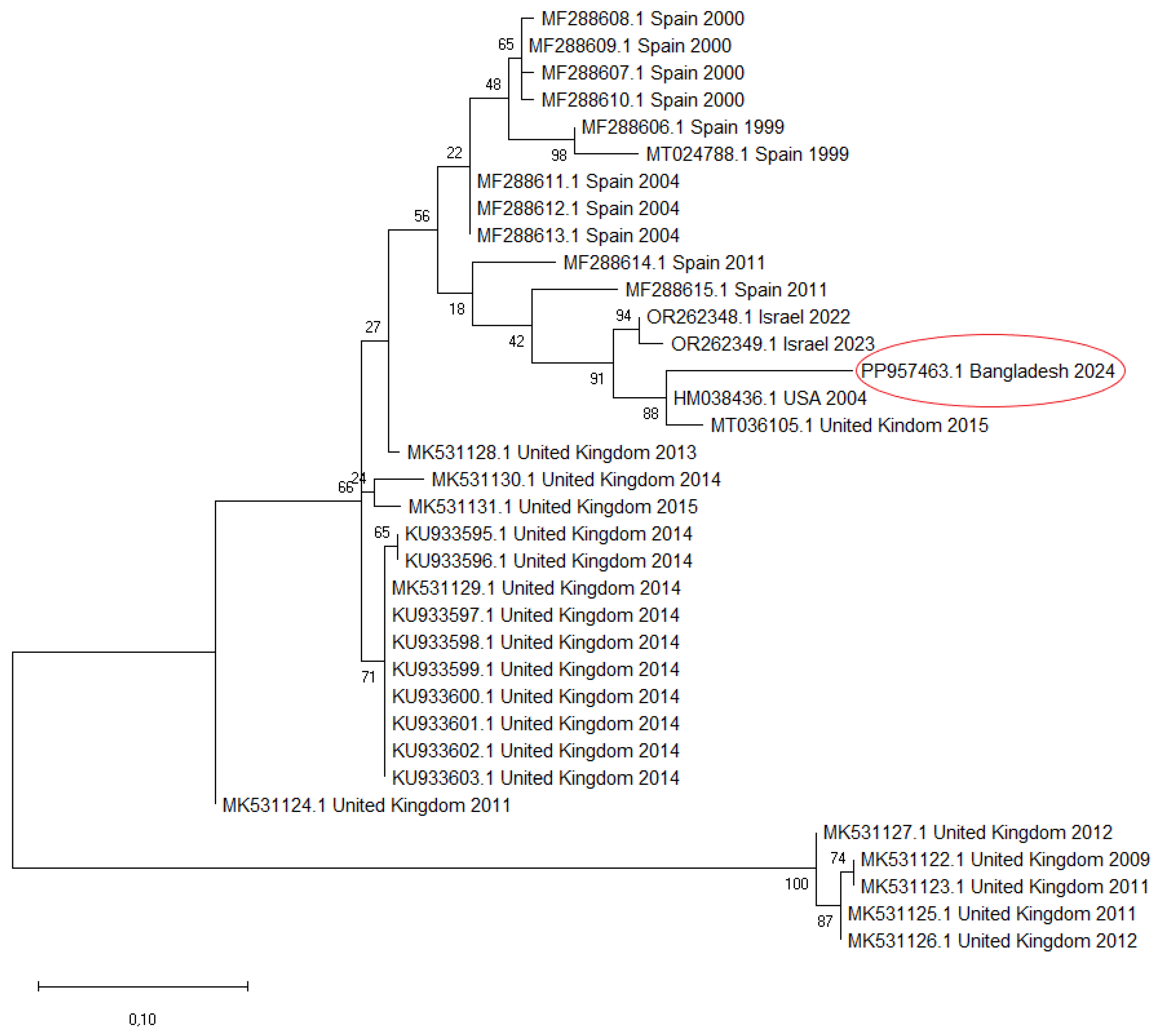 - Kumar, S.; Stecher, G.; Li, M.; Knyaz, C.; Tamura, K. MEGA X: Molecular Evolutionary Genetics Analysis across Computing Platforms. Mol. Biol. Evol. 2018, 35, 1547–1549. [Google Scholar] [CrossRef]