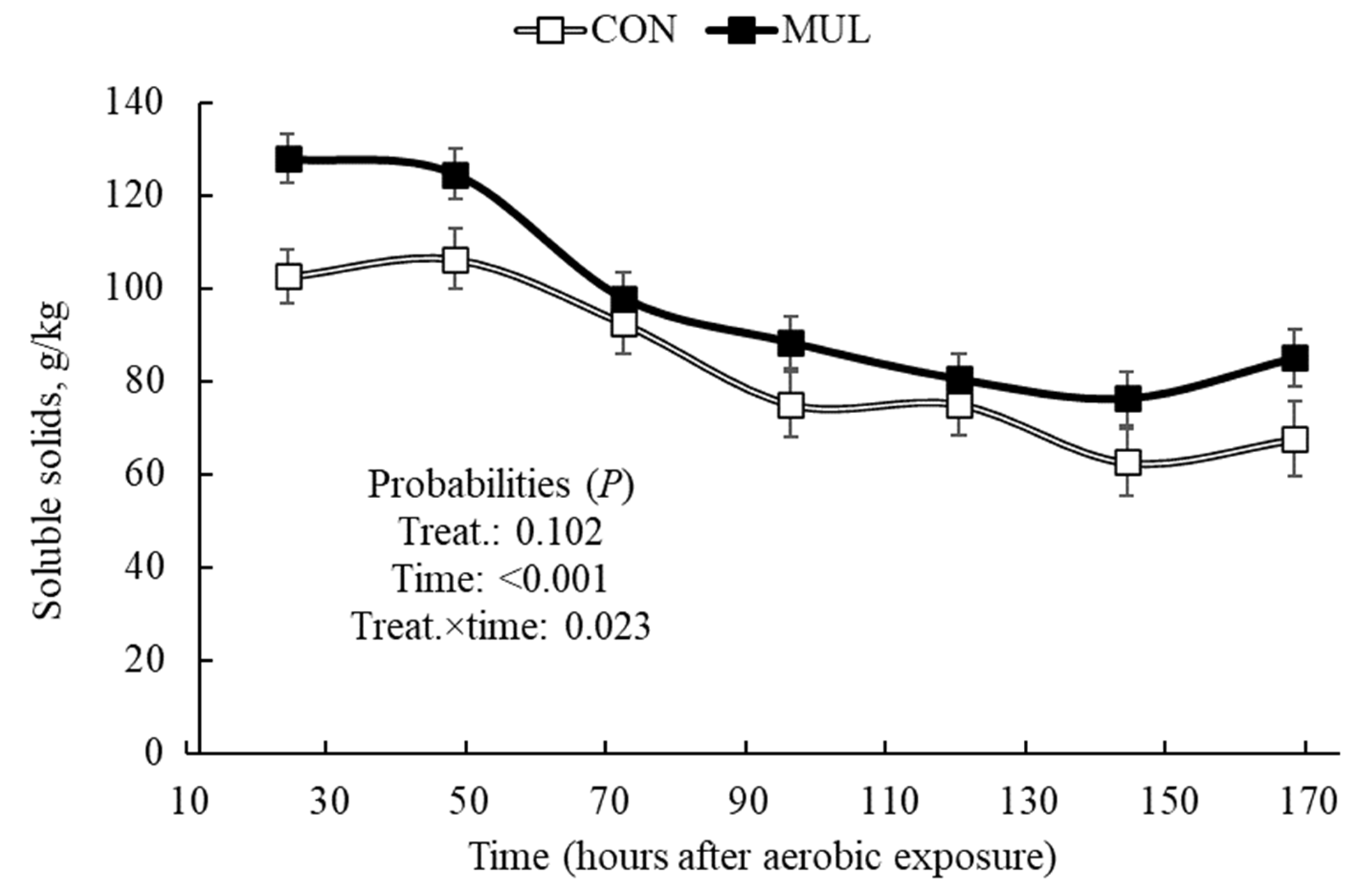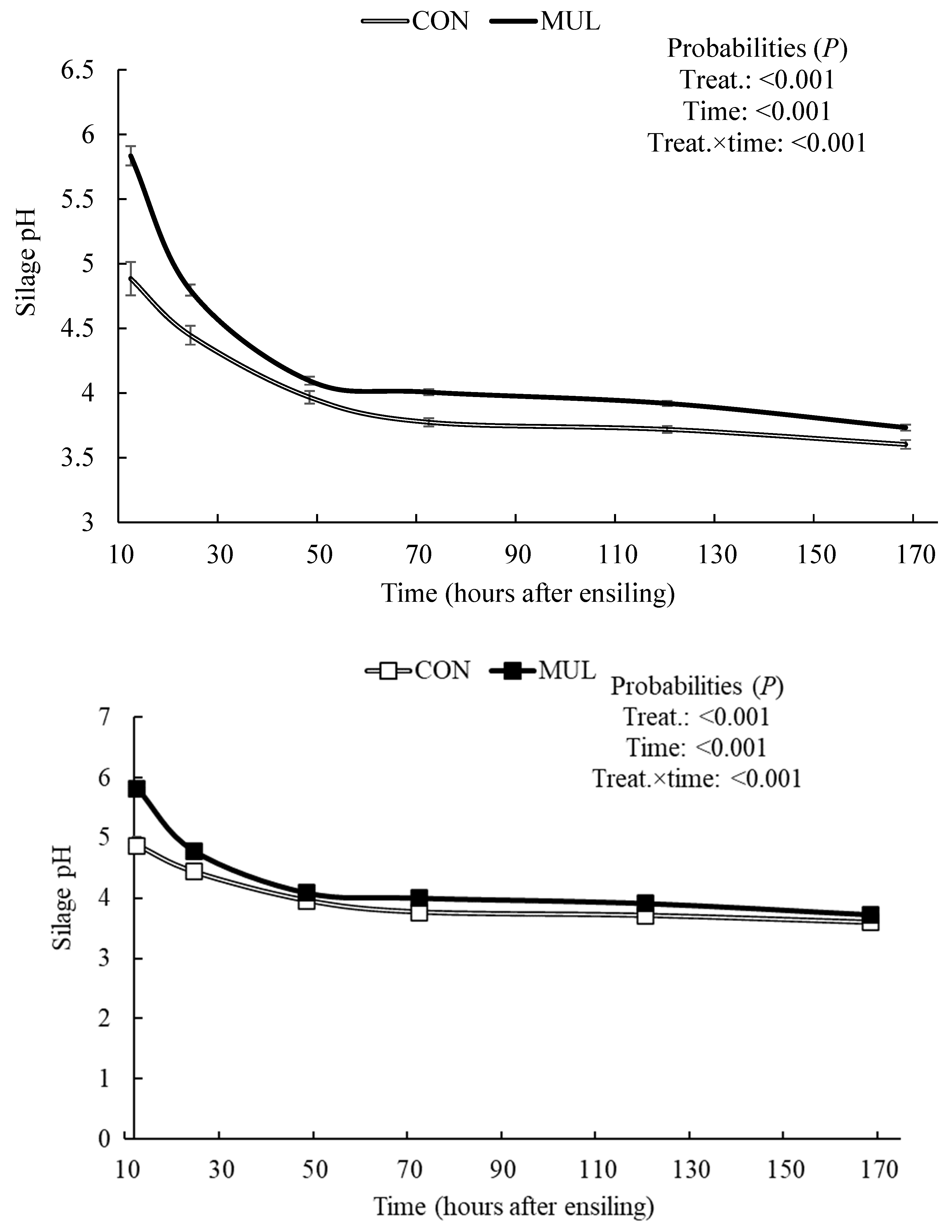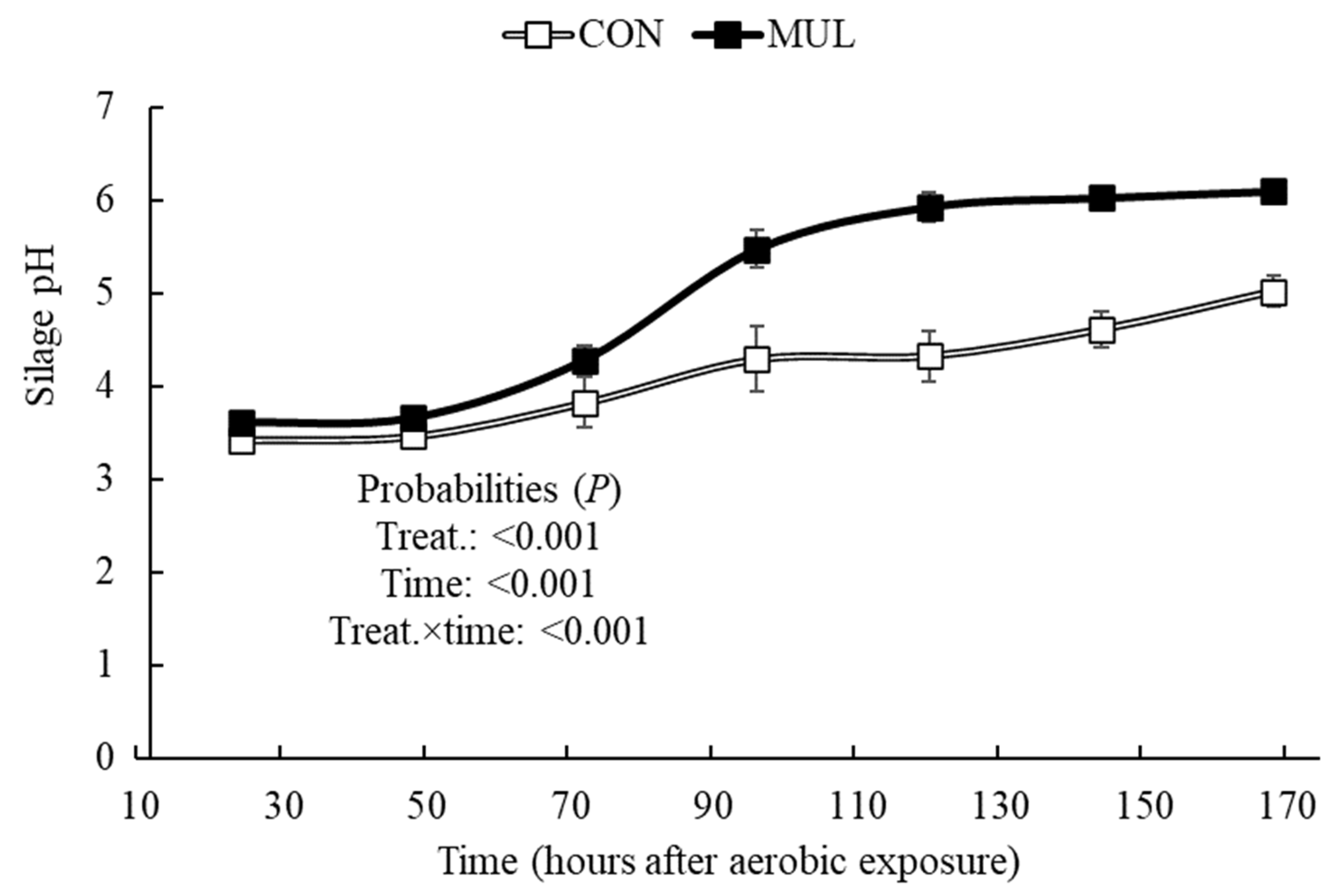 | Silage pH | 3.30 ± 0.025 | 3.51 ± 0.022 | 0.001 |