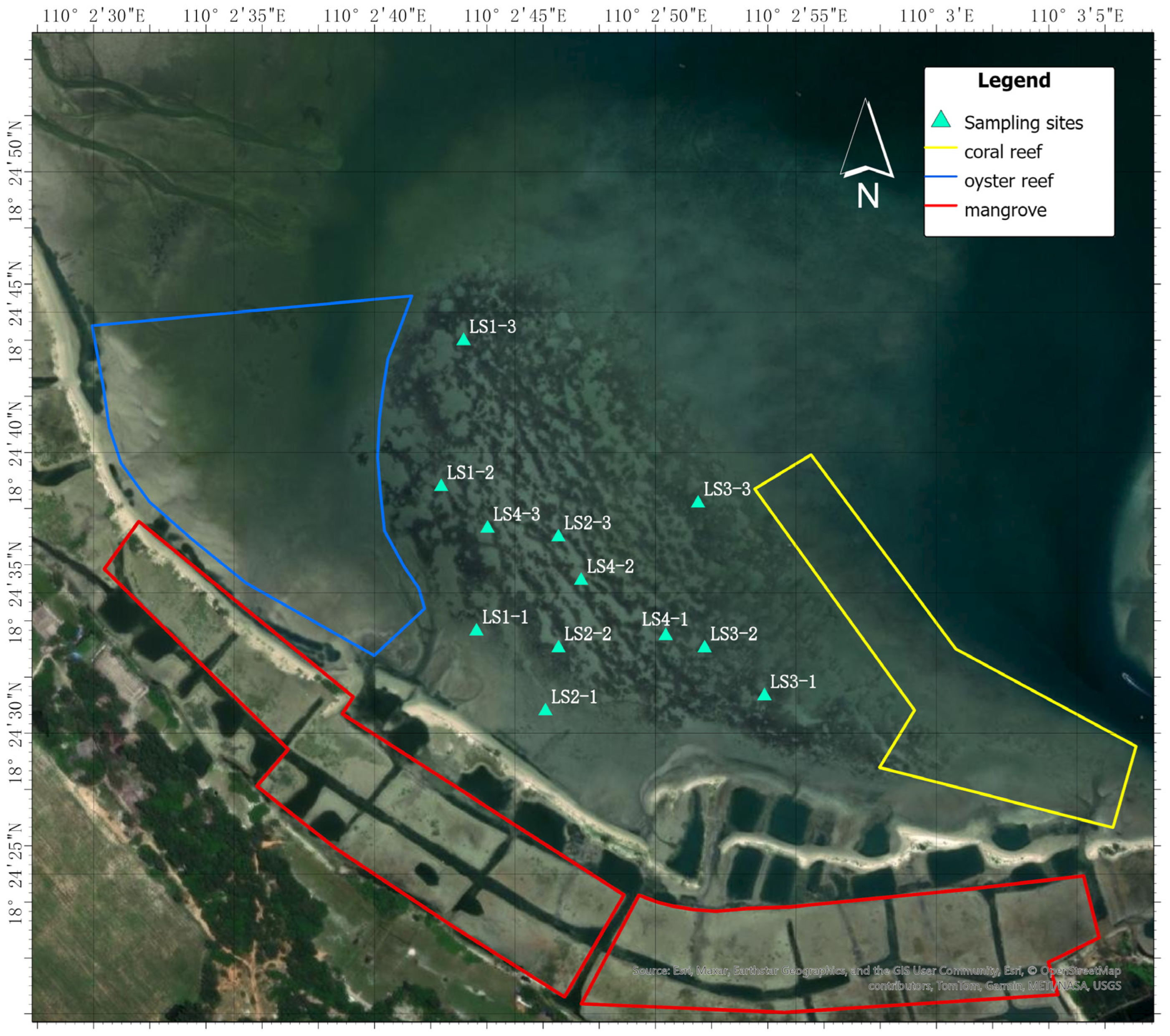 - Tu, Z.-g.; Han, T.-s.; Chen, X.-h.; Wu, R.; Wang, D.-r. The community structure and diversity of macrobenthos in Linshui Xincungang and Li’angang Seagrass Special Protected Area, Hainan. Chin. J. Mar. Environ. Sci. 2016, 35, 41–48. [Google Scholar]