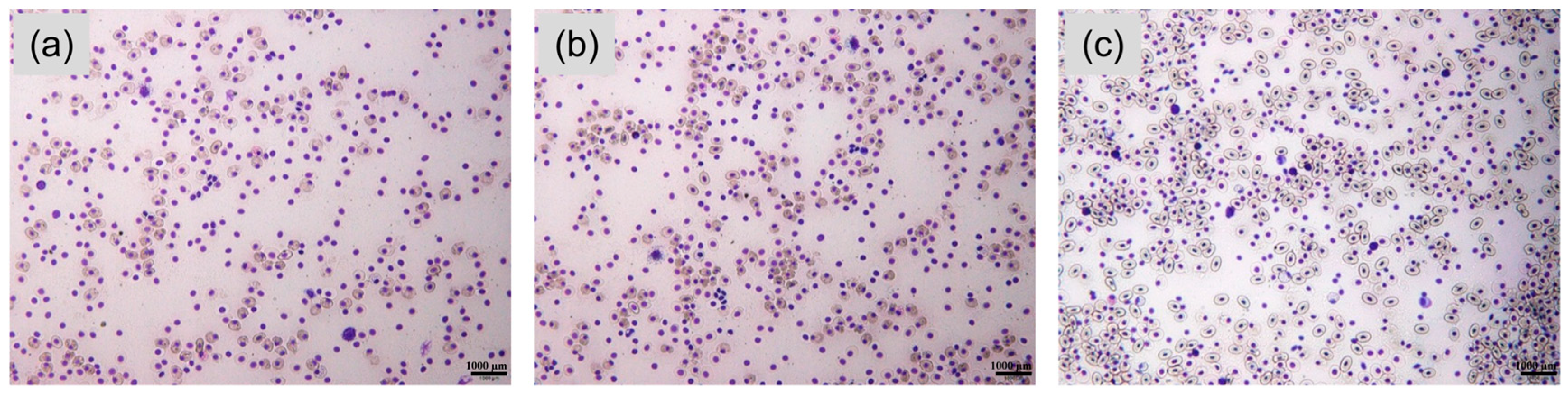 3.3. Effects of Fermented and Unfermented Chinese Herbal Diets on the Number of RBC and WBC