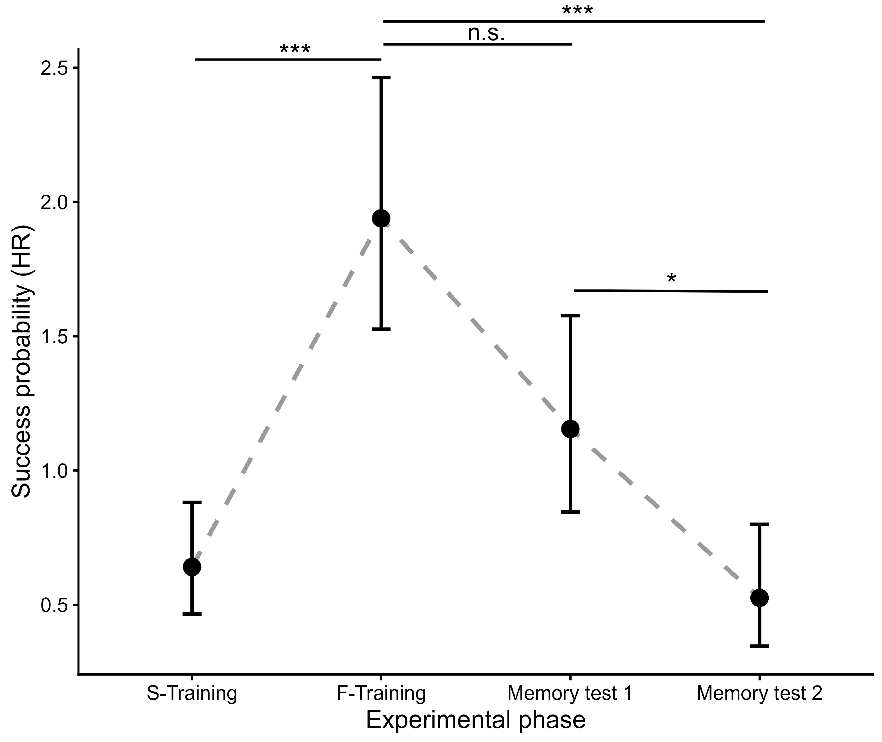 | Subadults Memory test 1 | start position, touches | 0.092 | [0, 0.189] | 0.0087 |