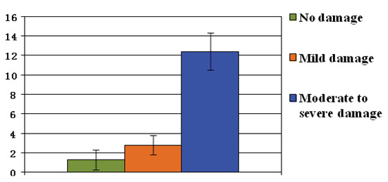 No participants in our study lost a pet during Hurricane Irene. In addition, none of our participants reported loss of human life among their family or friends. Overall rates of symptoms of psychopathology were fairly low (BDI: M = 6, SD = 7.6; PSSSR: M = 2.8, SD = 5; PDEQ: M = 12, SD = 6.7; SASRQ: M = 3.4, SD = 7). Two conservative omnibus MANOVAs were carried out predicting psychopathology symptoms by pet ownership and by evacuation status. Neither was significant. All psychopathology scales were significantly correlated with each other (all r > 0.23, all p < 0.05). Only two significant associations between hurricane specific factors and psychopathology emerged. First, acute stress, peri-traumatic dissociation and PTSD symptoms were all positively correlated with level of property damage (all r > 0.30, all p < 0.01). Second, the individuals who reported experiencing injury during the hurricane reported significantly higher levels of clinical distress across all measures (all t(94) > 2.3, all p < 0.05). See Figure 4.