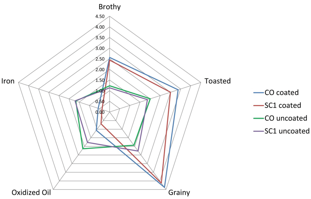 3.1.3. Coating Effect on Sensory Properties
