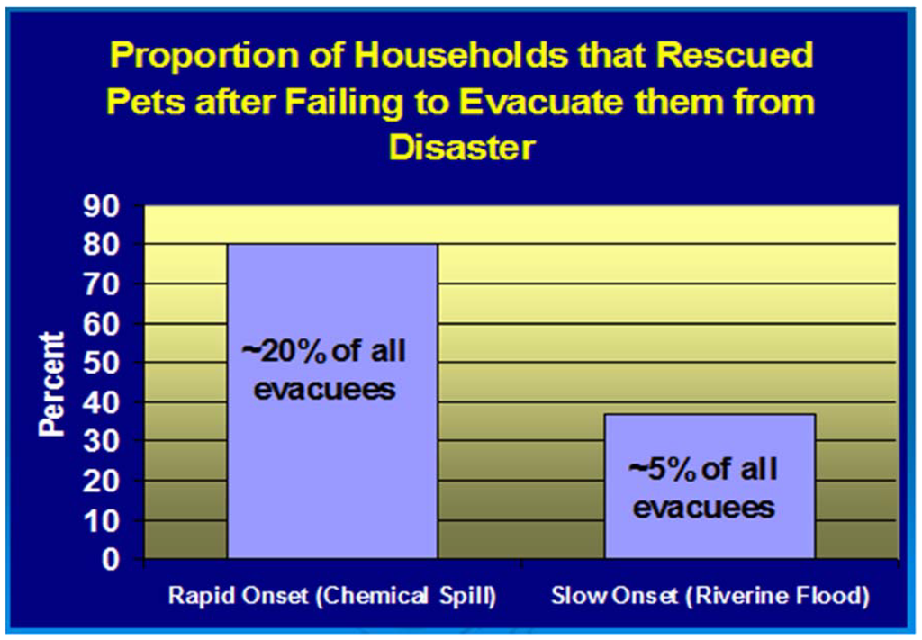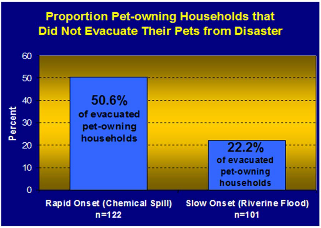 Proportion of pet-owning households that did not evacuate their pets from a slow and a rapid onset disaster [25,26].