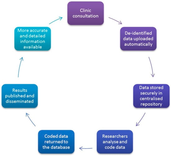 This article describes a collaborative project that builds on a similar approach adopted by the lead author and others at the Royal Veterinary College (RVC), UK. VetCompass Australia uses a software platform established at the RVC to harvest clinical records from veterinary practices into a centralized resource, enabling access to comprehensive and real-time primary practice data. It has been running in the UK for seven years, and is already transforming veterinary science there as the leading source of epidemiological data, with nearly 40 million treatment records related to approximately 6 million animals, from 498 practices available for interrogation [,]. In Australia, sentinel surveillance approaches have been used for a number of companion-animal diseases. The Disease WatchDog surveillance system was a prospective national disease-surveillance project, focusing on dogs and cats []. Data entered into the system from veterinary clinics as cases of diseases were diagnosed provided monthly online updates. However, recent analysis of its data has indicated the existence of significant data artefacts that are likely to be a result of poor compliance by users of the system []. The VetCompass data service overcomes these challenges in that, once implemented on practice-management systems in Australia, it allows automated transmission and de-identification of veterinary clinical records into a centralized database. Researchers can then immediately interrogate the electronic records held by participating clinics. As a long-term investment, the research potential grows as new records are entered and as new practices sign up. In addition, the project will incorporate new linguistic programing methodology to improve the quality of data extraction from those records.