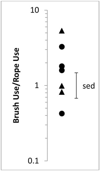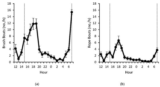 3.2. Hourly Distribution of Brush Use and Rope Use