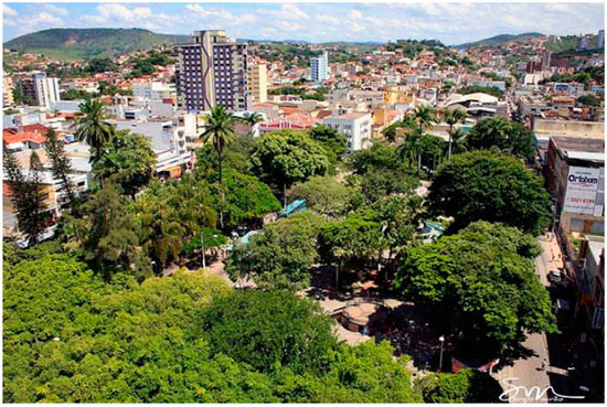 The study was conducted in Tiradentes Square in Teofilo Otoni, Minas Gerais, Brazil (17°51′52.73″ S, 41°30′29.48″ W). Teofilo Otoni is a city in the northeast of Minas Gerais, located in the Mucuri River Valley, and has a population estimated at 140,000 inhabitants [14]. Currently, the city borders contain an area of 3242 square kilometers. The climate is tropical with an average annual temperature of 23 °C; it has dry, mild winters and rainy summers with high temperatures [14].