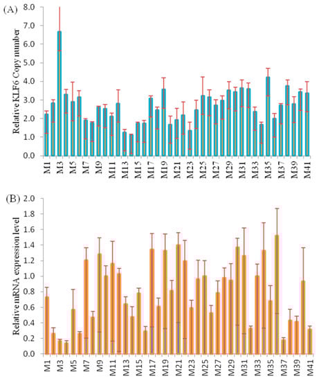 2.4. Analysis of Copy Number Variation and Expression of the KLF6 Gene