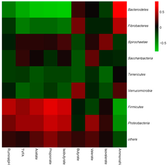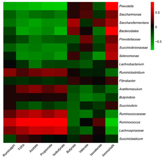 3.4. Correlations between Bacteria Communities and Ruminal Fermentation Parameters