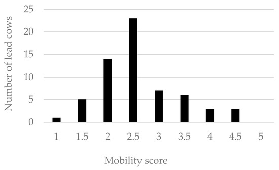 The distribution of mobility scores of cows leading their pair is shown in Figure 4.