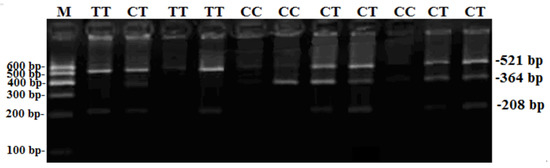 - Medrano, R.F.V.; De Oliveira, C.A. Guidelines for the Tetra-Primer ARMS–PCR Technique Development. Mol. Biotechnol. 2014, 56, 599–608. [Google Scholar] [CrossRef]