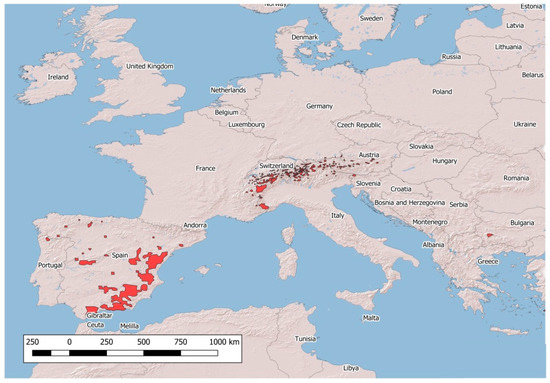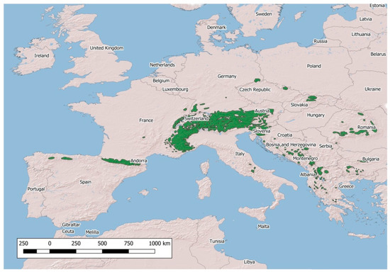 The population density of the four native European wild Caprinae, namely, the Northern chamois Rupicapra rupicapra, Southern chamois Rupicapra pyrenaica, Alpine ibex Capra ibex and Iberian ibex Capra pyrenaica, has continued to increase in recent decades [1,2]. In parallel, the distribution area of these species has remarkably widened (Figure 1 and Figure 2).