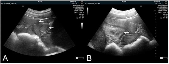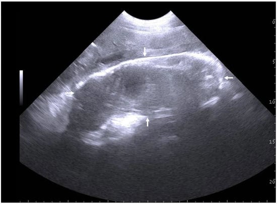 - Kauffold, J.; Gmeiner, K.; Sobiraj, A.; Richter, A.; Failing, K.; Wendt, M. Ultrasonographic characterization of the urinary bladder in sows with and without urinary tract infection. Vet. J. 2010, 183, 103–108. [Google Scholar] [CrossRef] [PubMed]