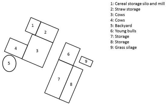 Layout of the Charolais cattle farm site that experienced a type C botulism outbreak in France in spring 2018.